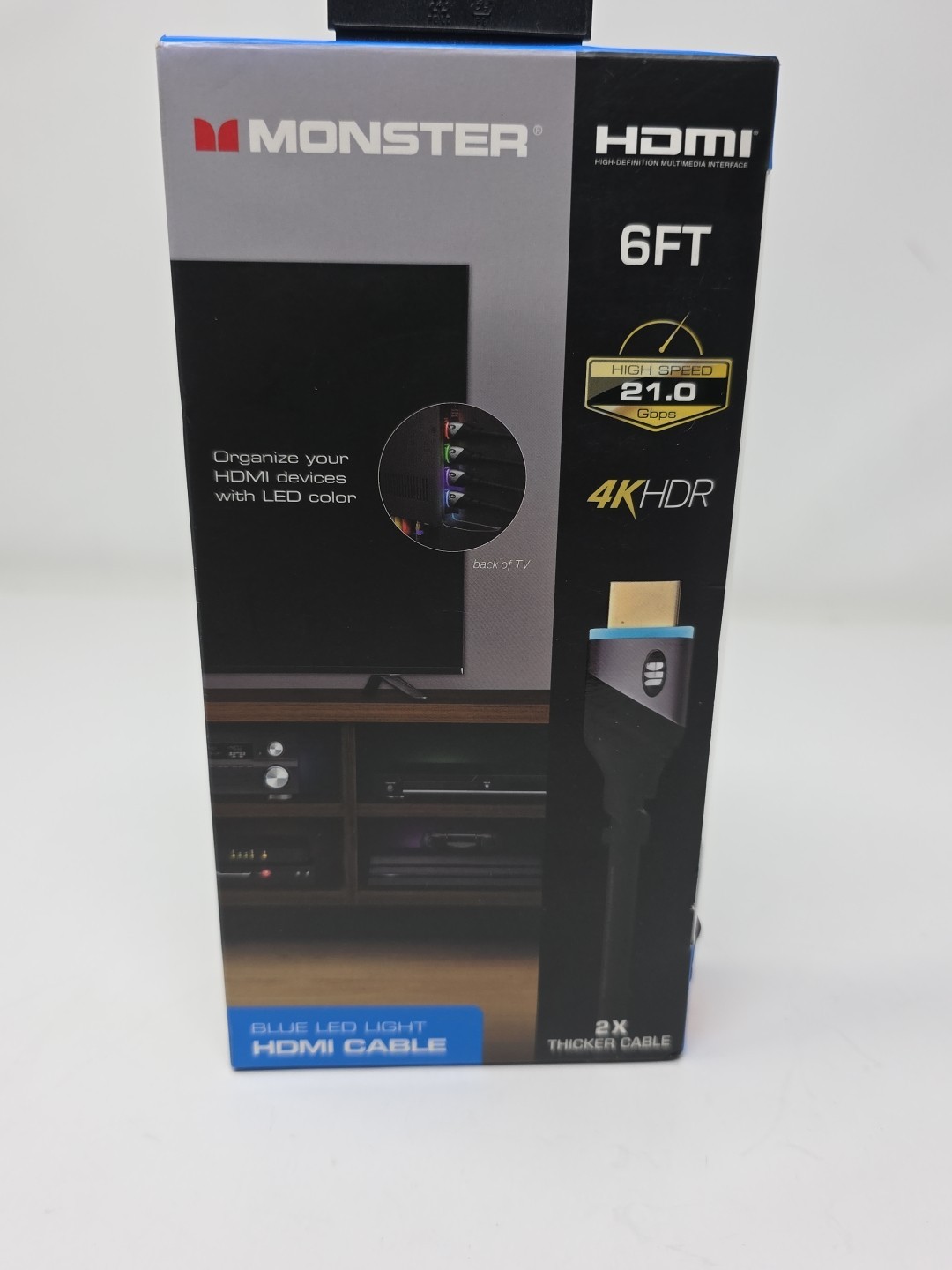 Monster 6ft 4k HDR LED Blue light HDMI Cable