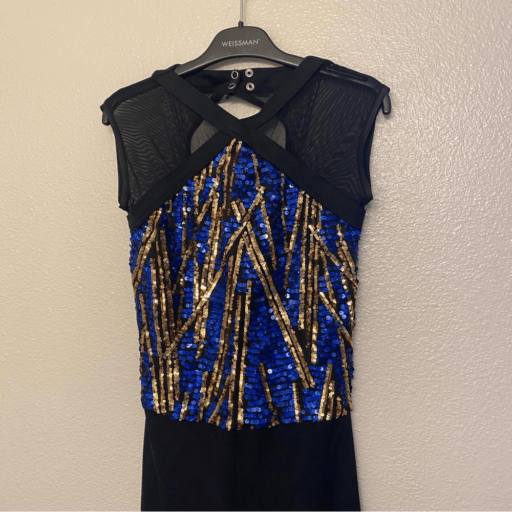 WEISSMAN Dance Costume unitard jumpsuit blue sequin Here 12534 SA Small adult