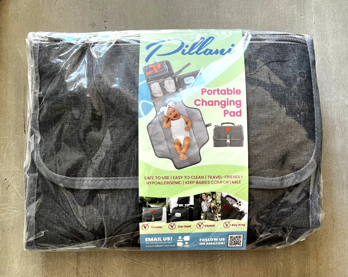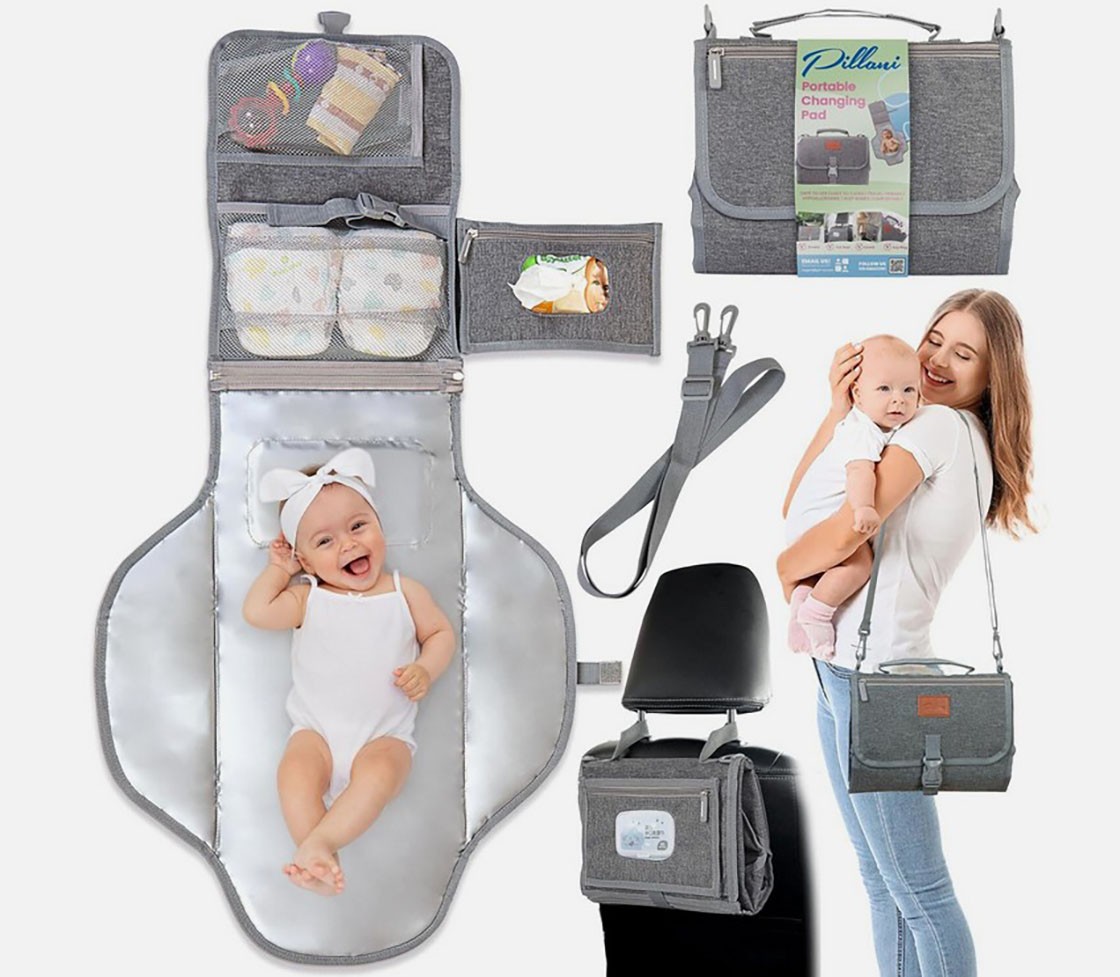 как выглядит PILLANI Diaper Changing Pad Waterproof Memory Foam Detachable Wipes Pocket Gray фото