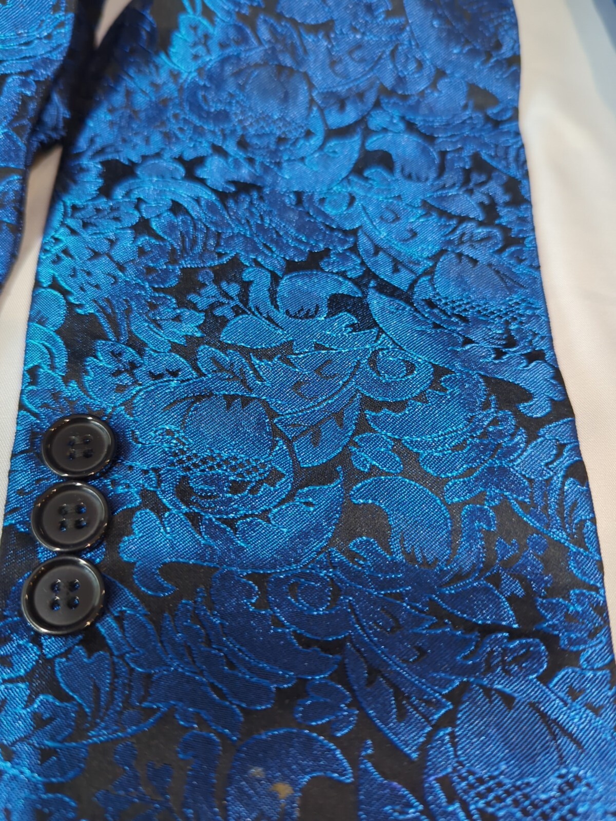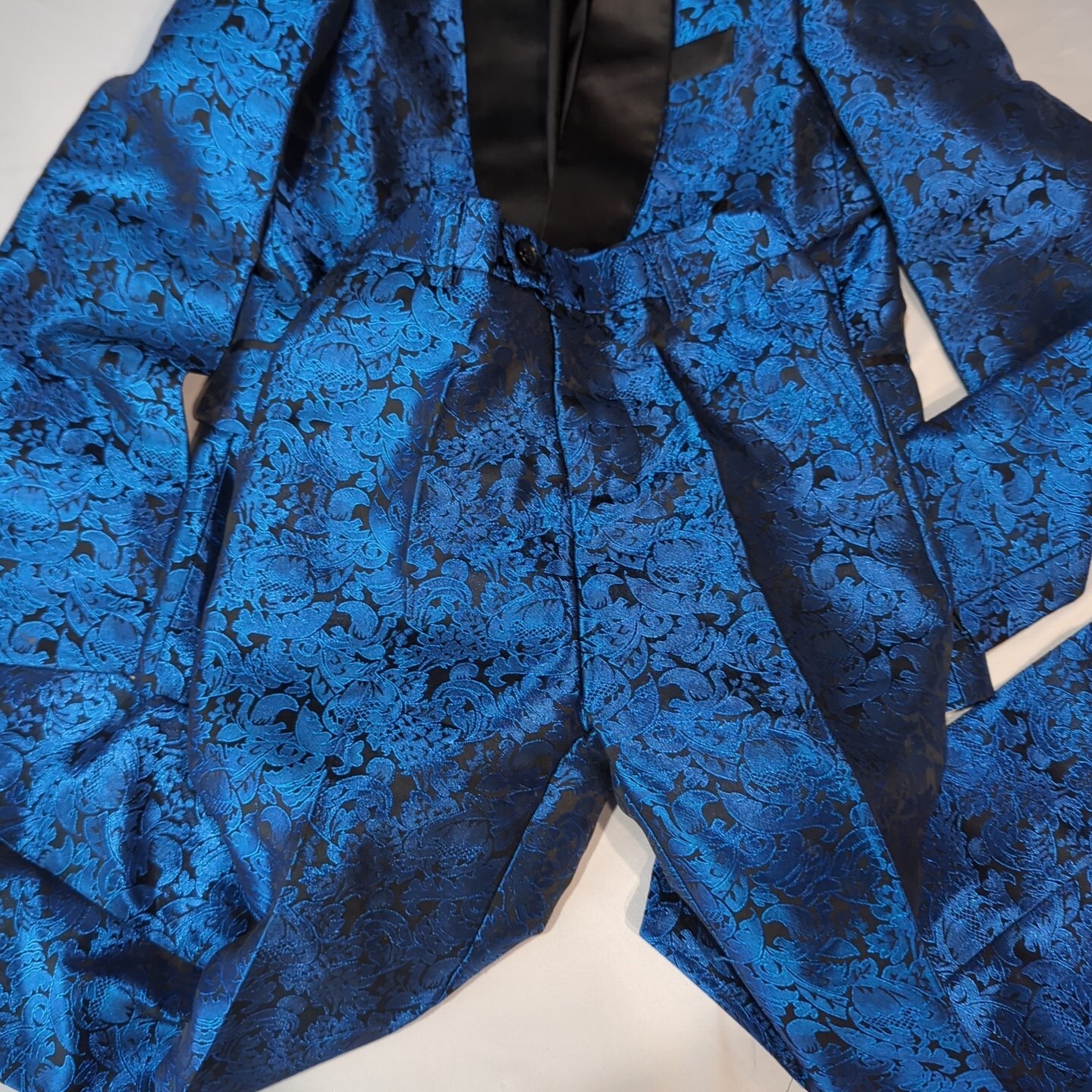Tuxedo Jacket Pant Boys Sz 130 8 Bright Paisley And Foil Blue Tailored Suit