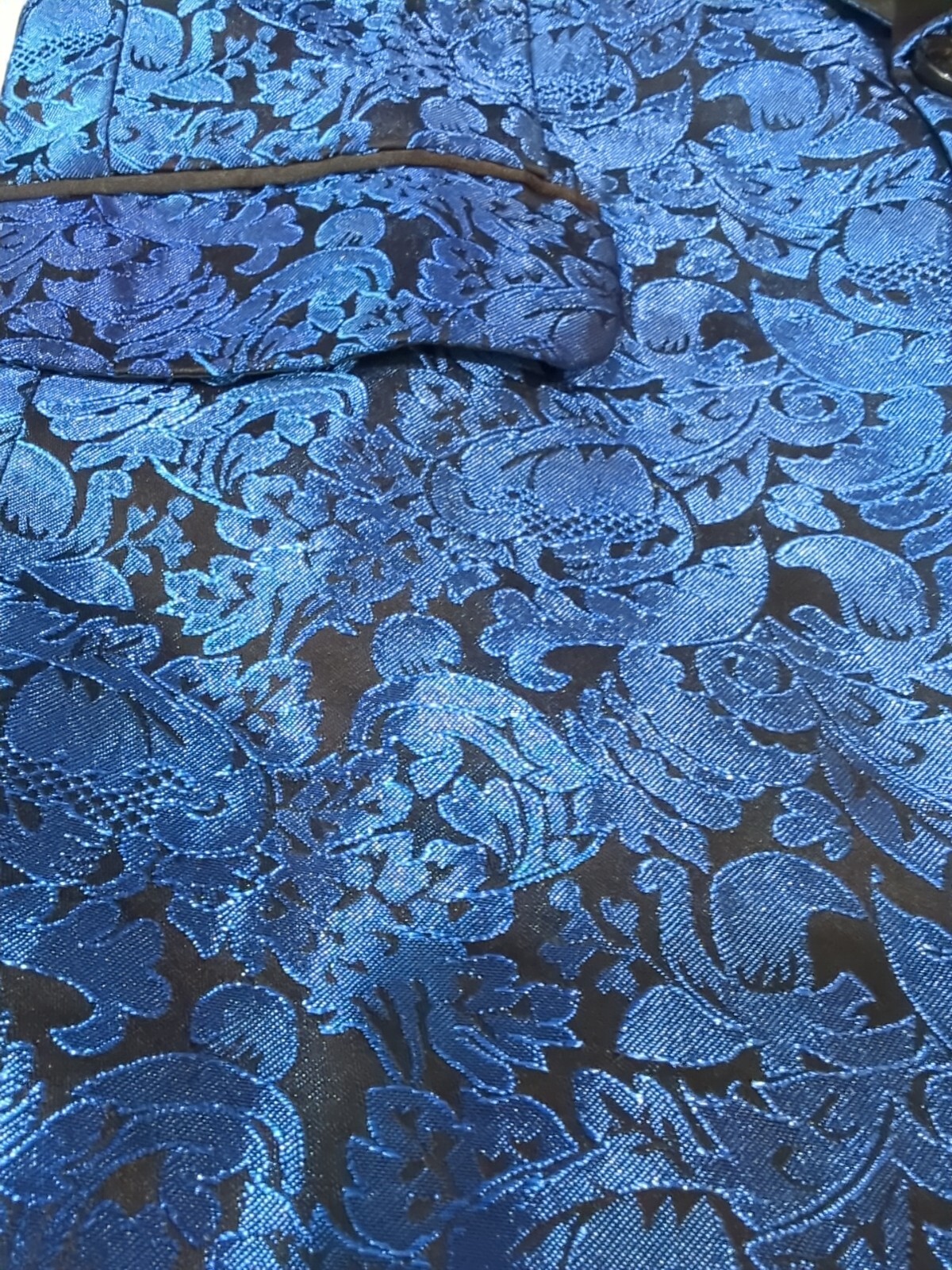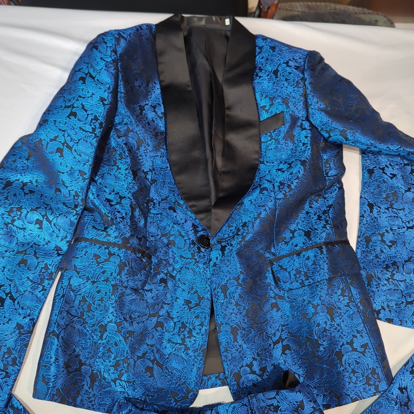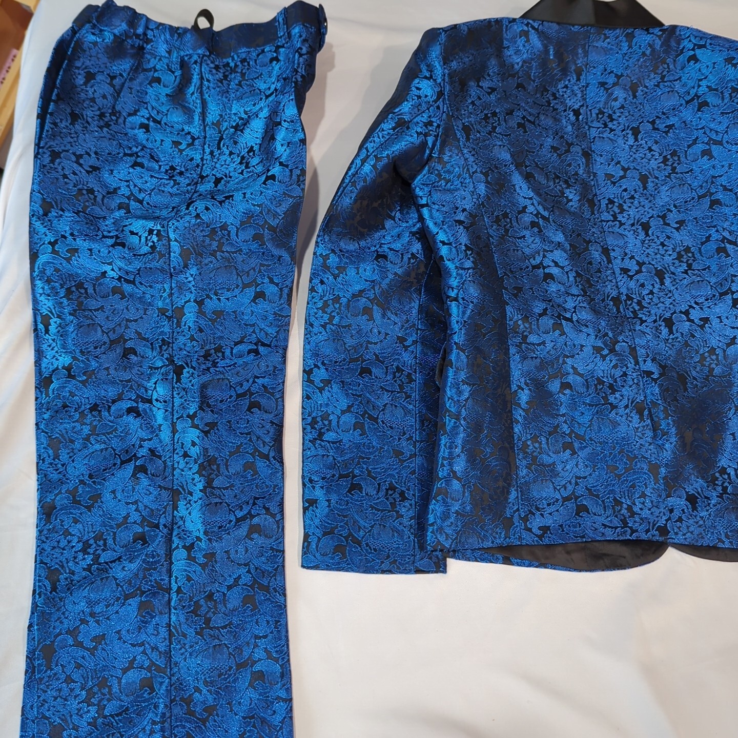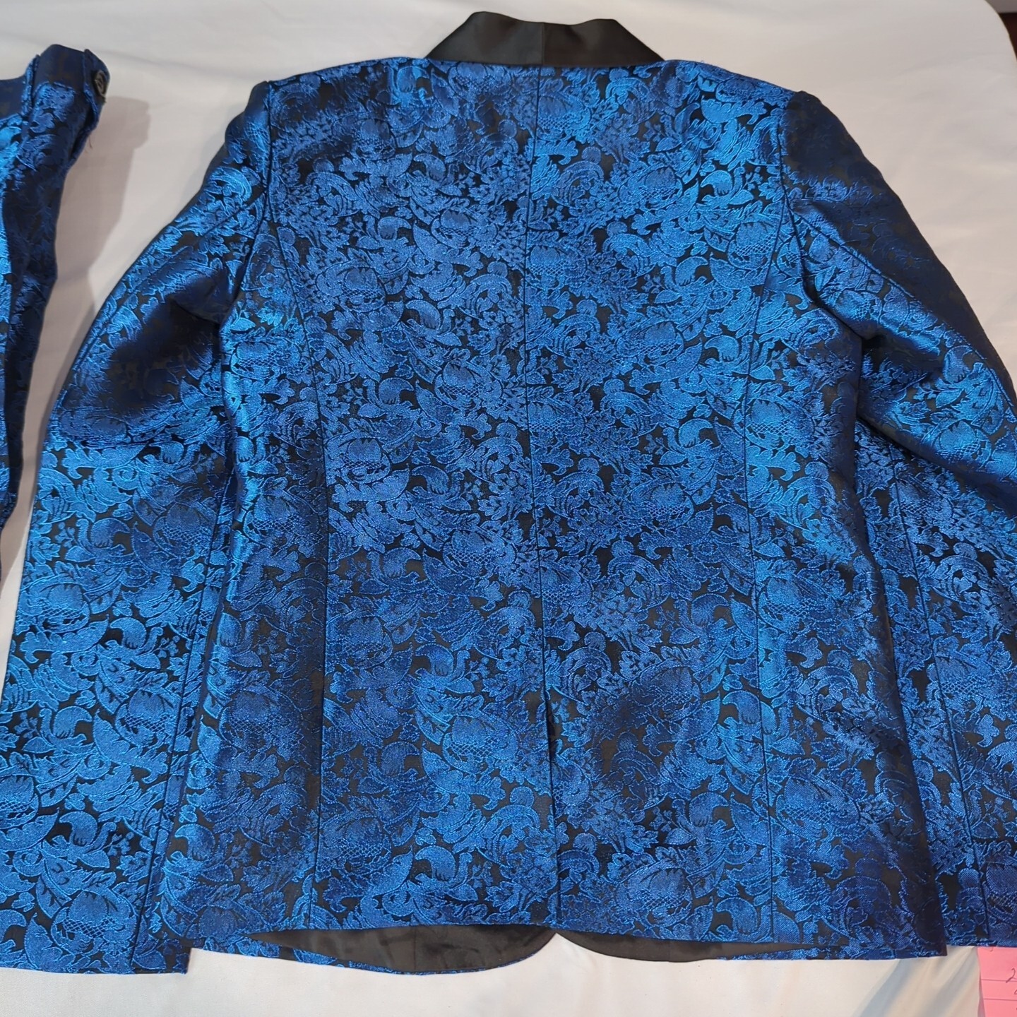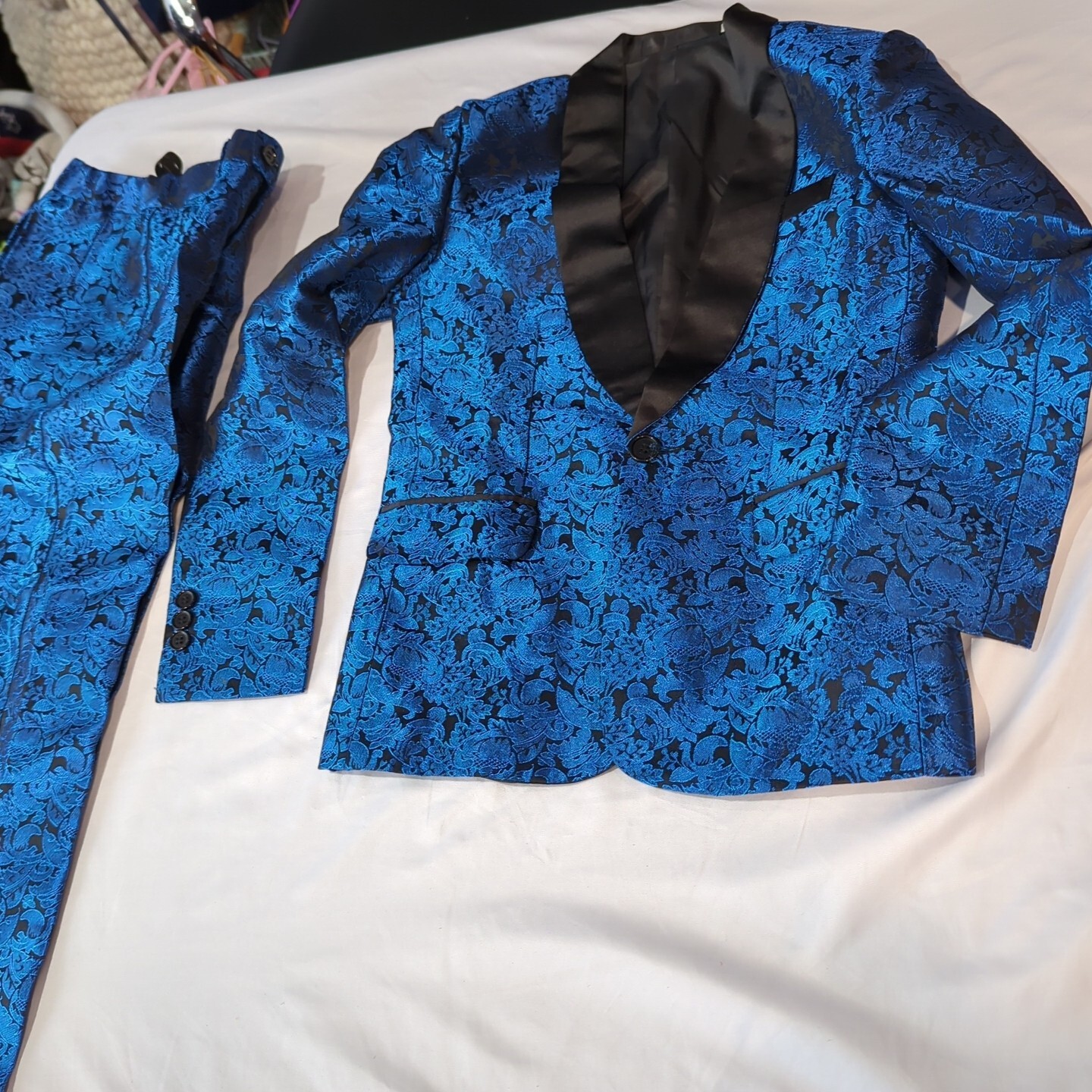 как выглядит Tuxedo Jacket Pant Boys Sz 130 8 Bright Paisley And Foil Blue Tailored Suit фото