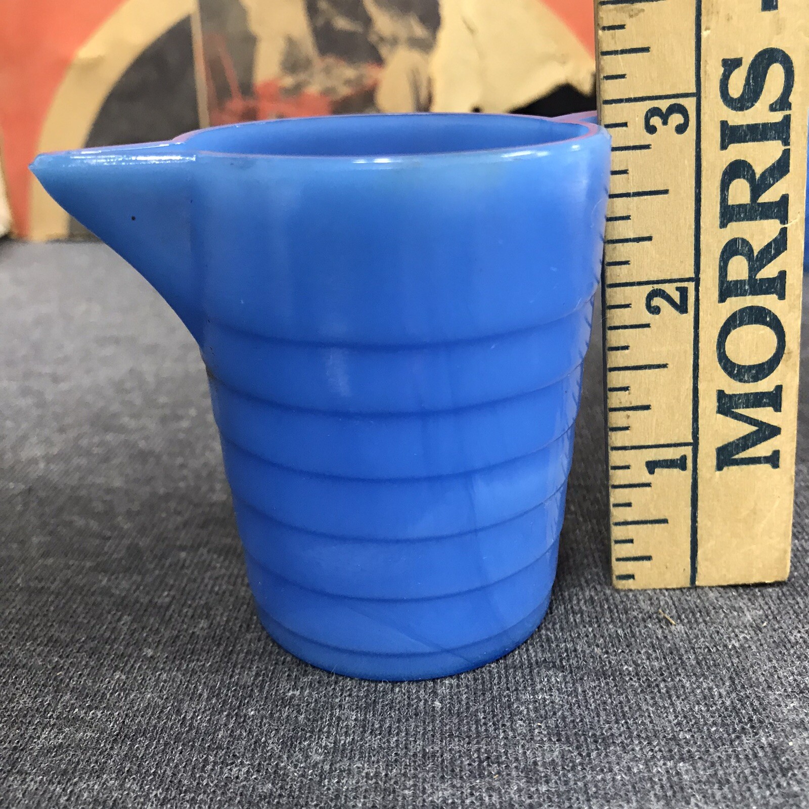 Vintage Akro Agate Blue Children s Tea Pot Pitcher concentric ring 2 7/8 Tall