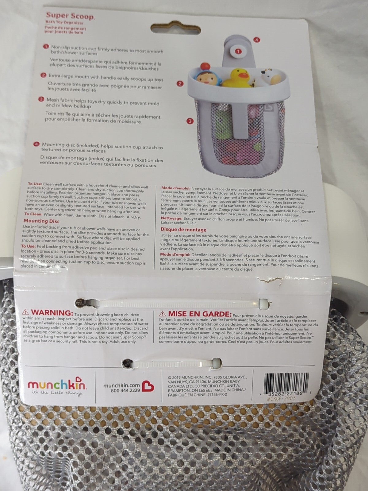 Munchkin Super Scoop Bath Toy Organizer in Grey/White Toy Scooper NWT Suction C