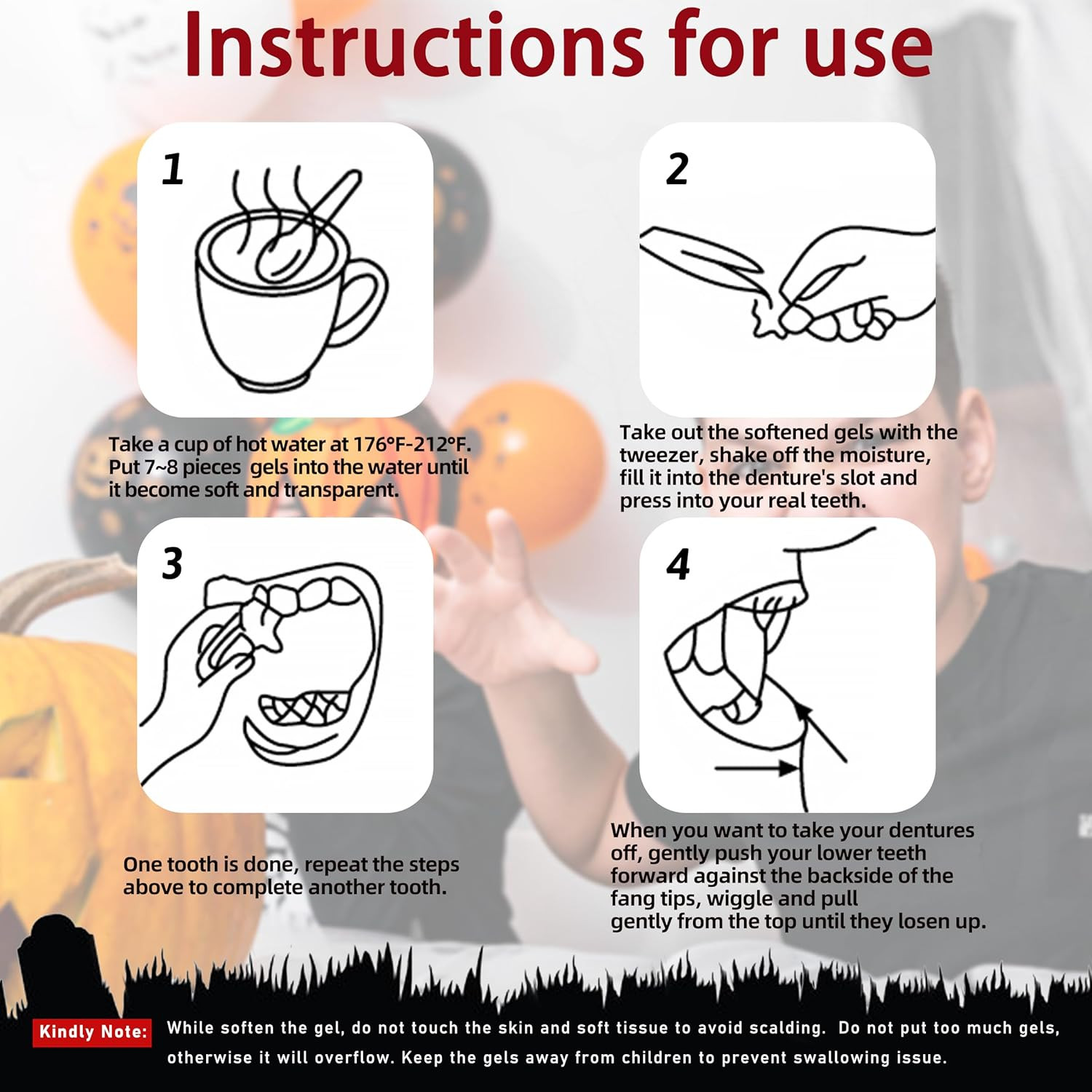 Vampire Teeth 4 Sizes Halloween Decorations Party Cosplay Props 4 Pairs Vampire