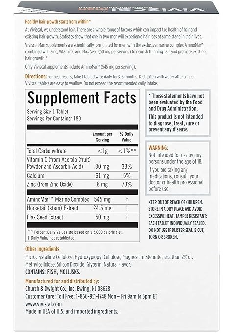 Viviscal Men Hair Growth Supplements 180 Tablets - 3 Month Supply exp12/2026