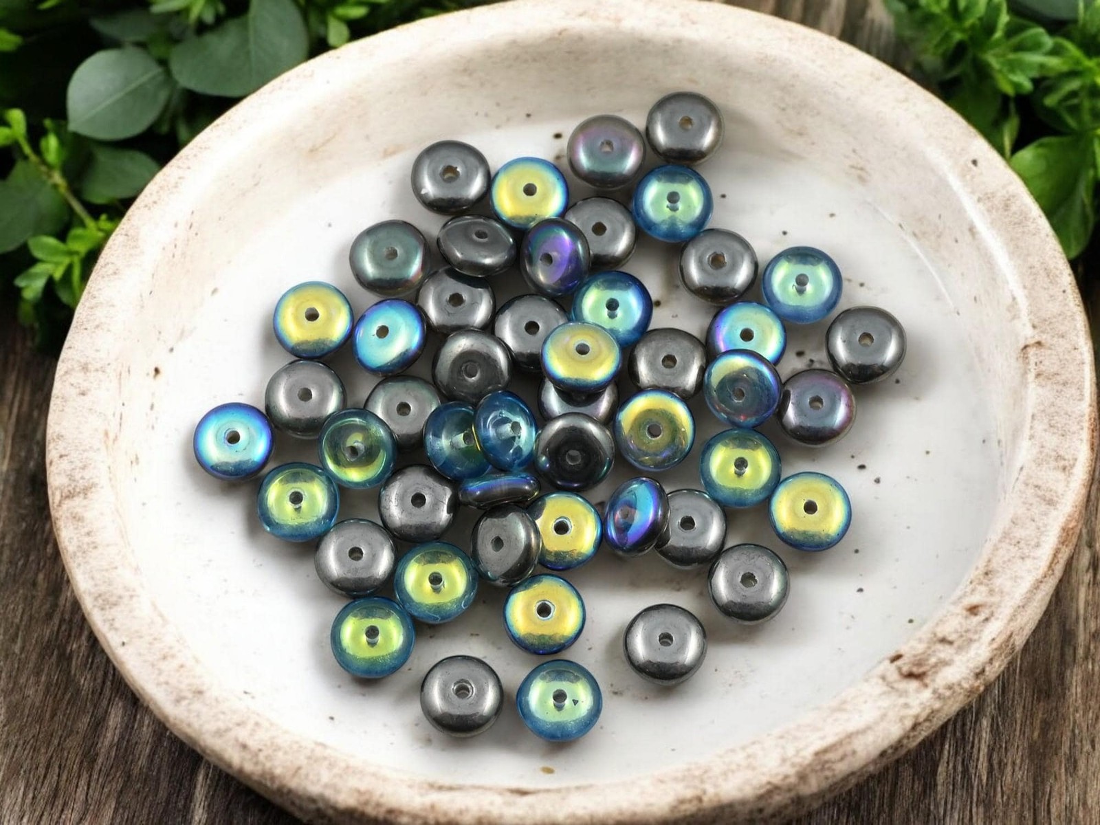 6x2mm Metallic Gray Washed Crystal AB Smooth Rondelle Czech Glass Beads 50 Beads