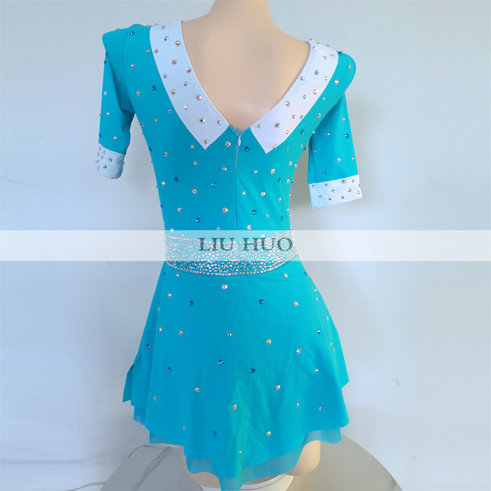 Women Girl Costume Competition Leotard Ice Figure Skating Dress Blue Roller Kids