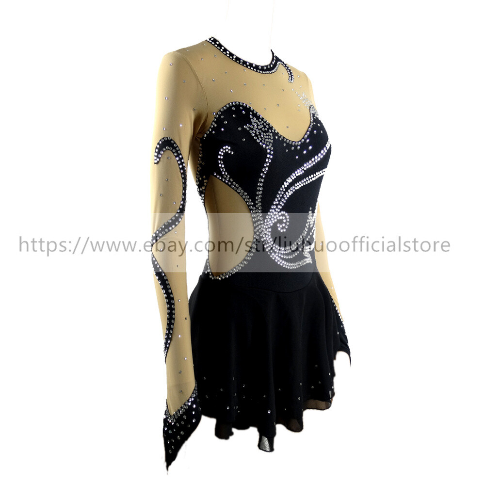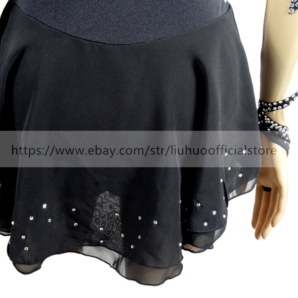 Women Aldult Girl Customize Costume Competition Leotard Ice Skating Dress Black