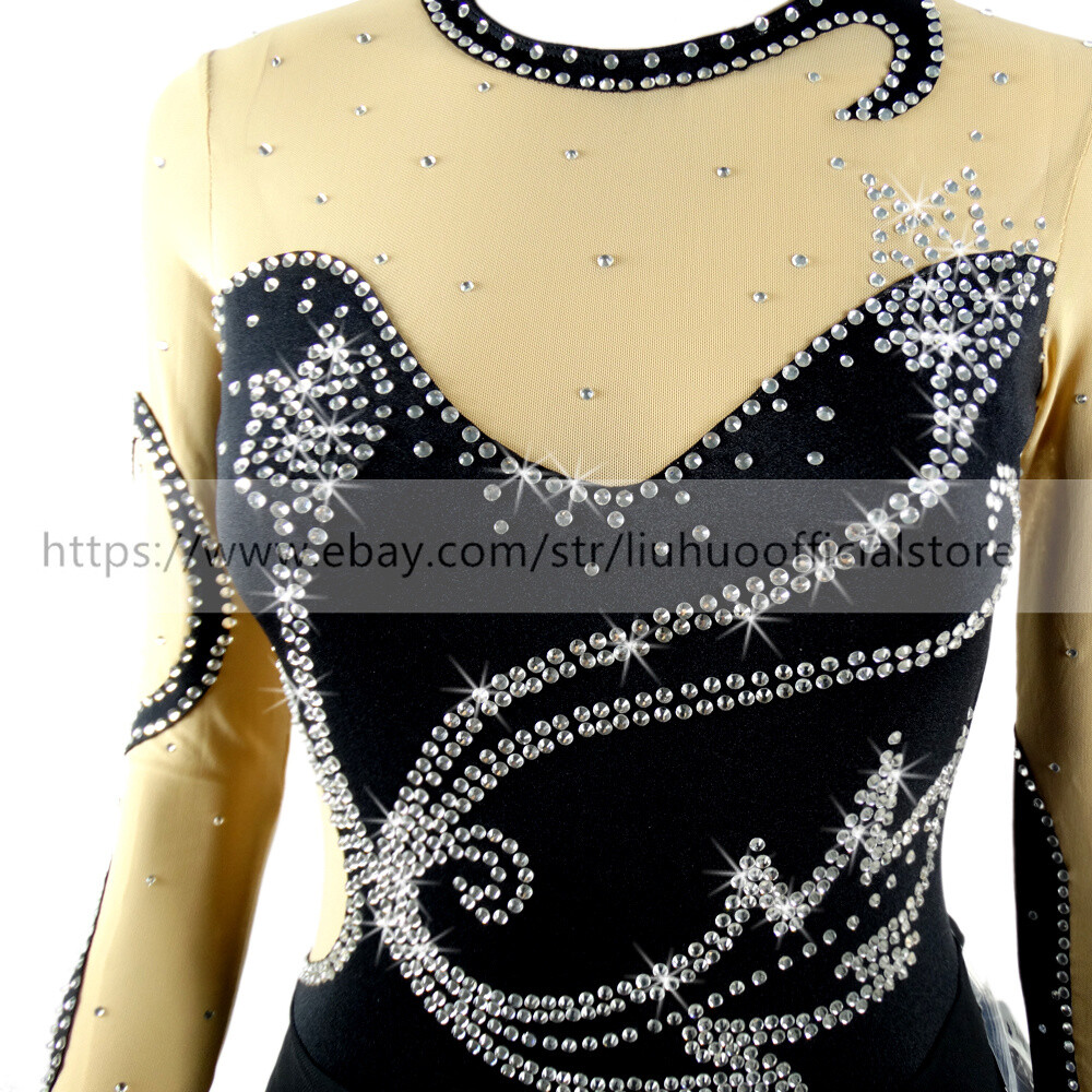 как выглядит Women Aldult Girl Customize Costume Competition Leotard Ice Skating Dress Black фото