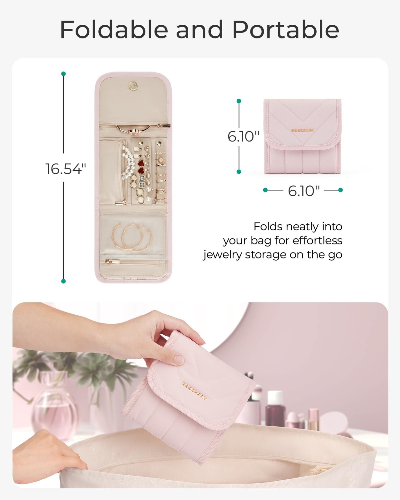 как выглядит BAGSMART Travel Jewelry Organizer Case, Foldable Jewelry Roll for Necklaces, ... фото
