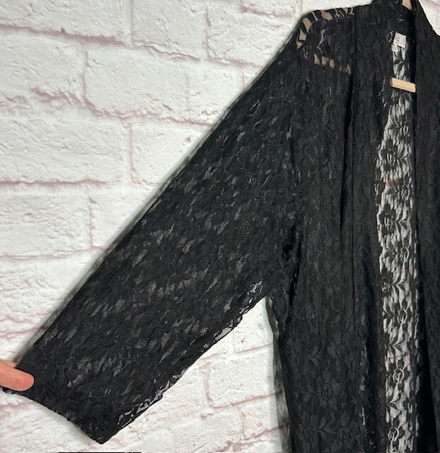 как выглядит XL/1X/2X/3X New Jet Black Floral Stretchy Lace Long Duster Cardigan Kimono фото