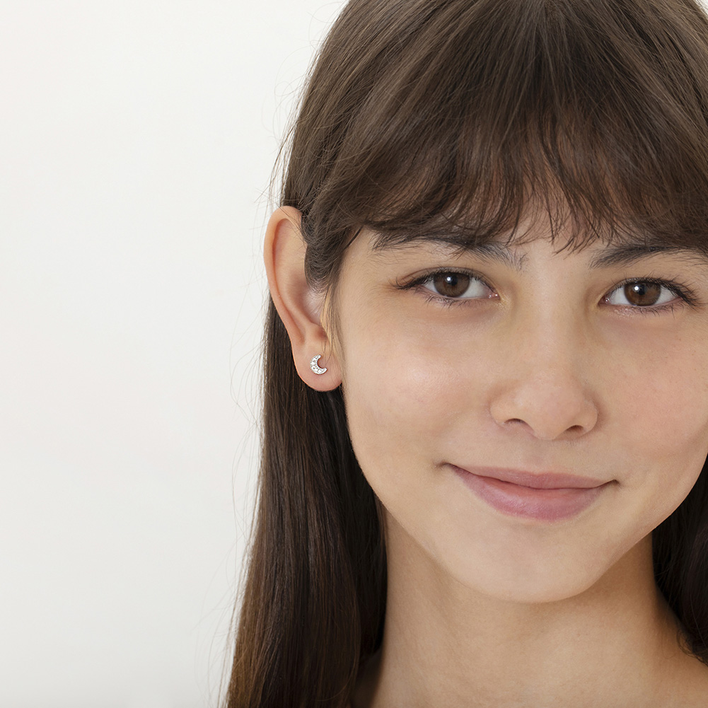 как выглядит Star Moon CZ Toddler / Kids Earrings Screw Back Celestial - Sterling Silver фото