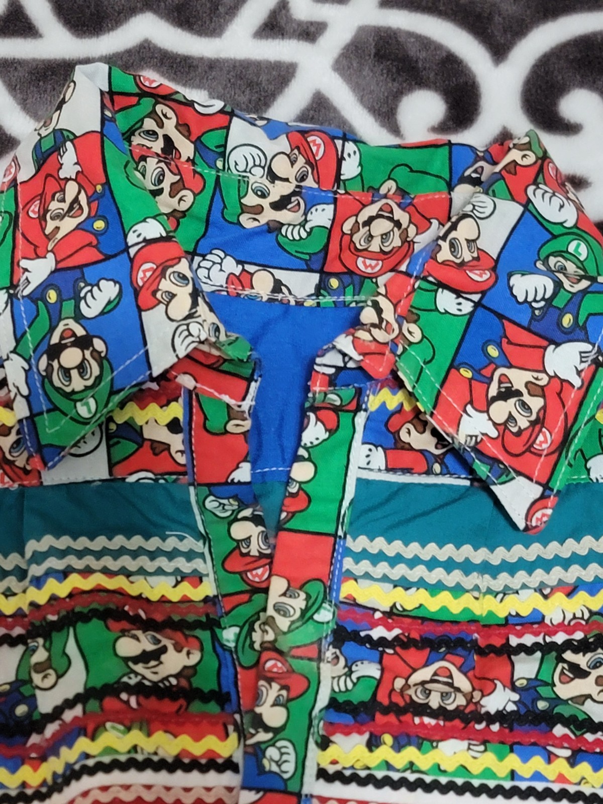 как выглядит Vintage Seminole Indian Handmade Patchwork Shirt Rare Super Mario Bros Nintendo фото