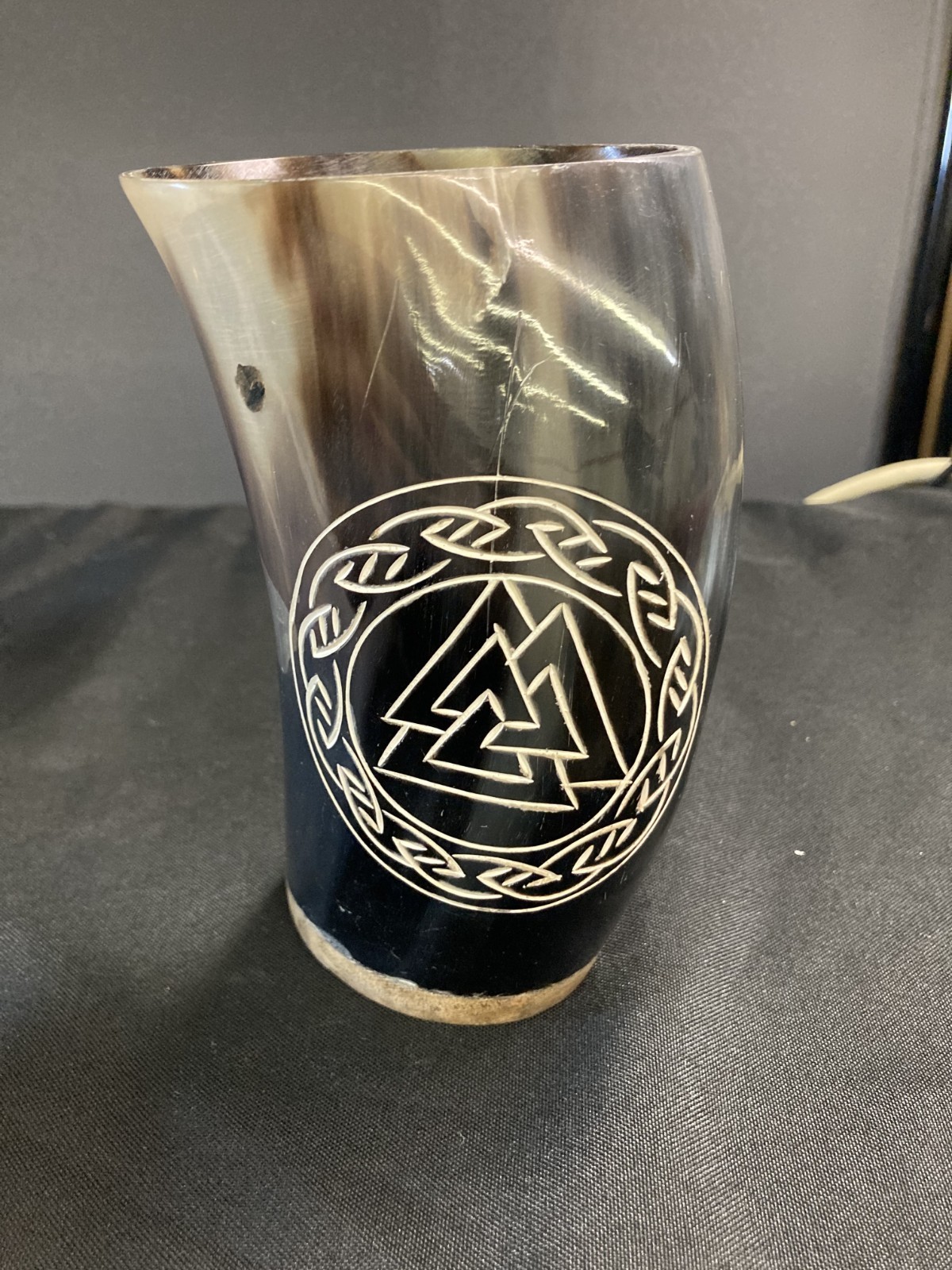 как выглядит Viking Drinking Horn Mugs Set of 4 Natural Ox Horn Shot Glasses фото