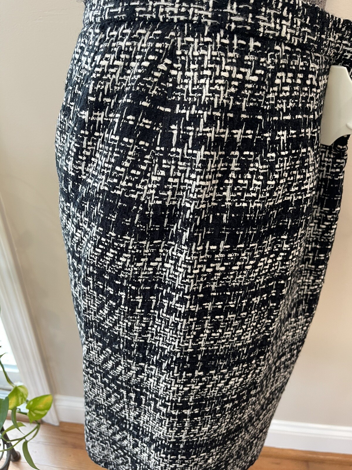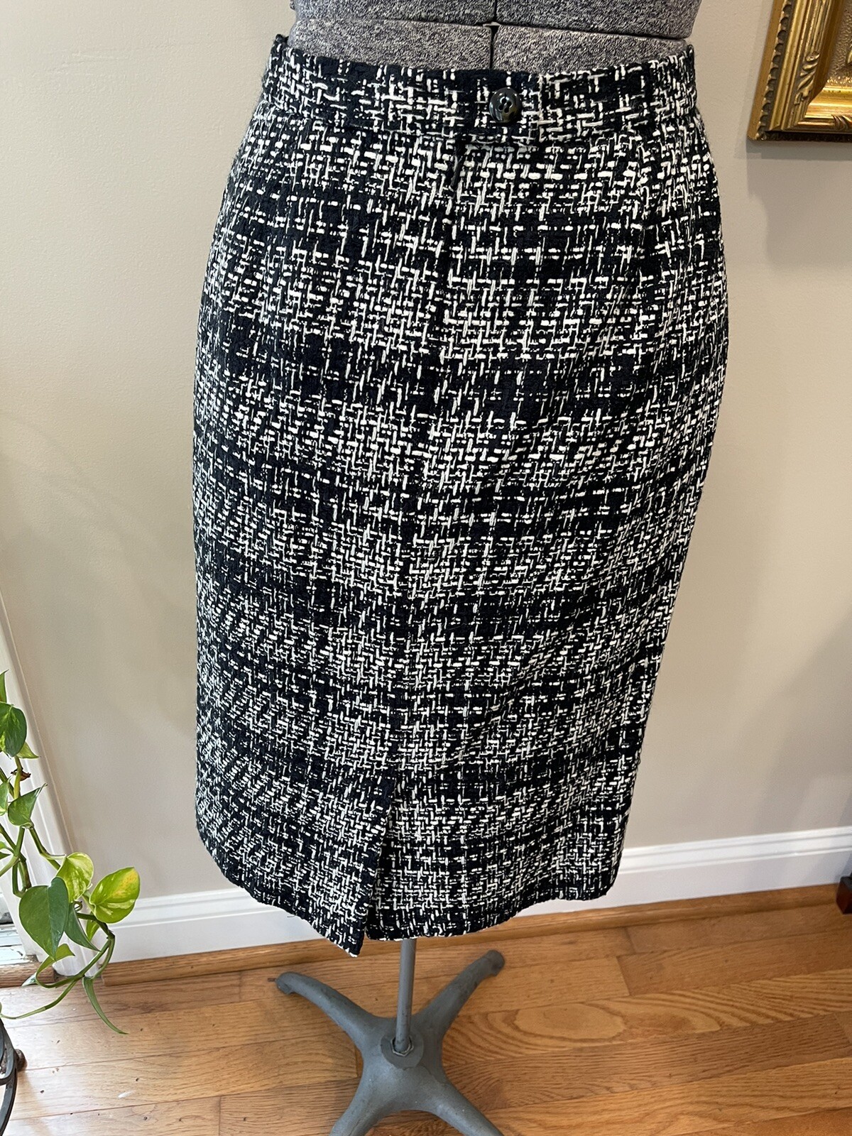 Vintage 1990s Knee Length Skirt Houndstooth-size 8 Ladies-black White-no Brand
