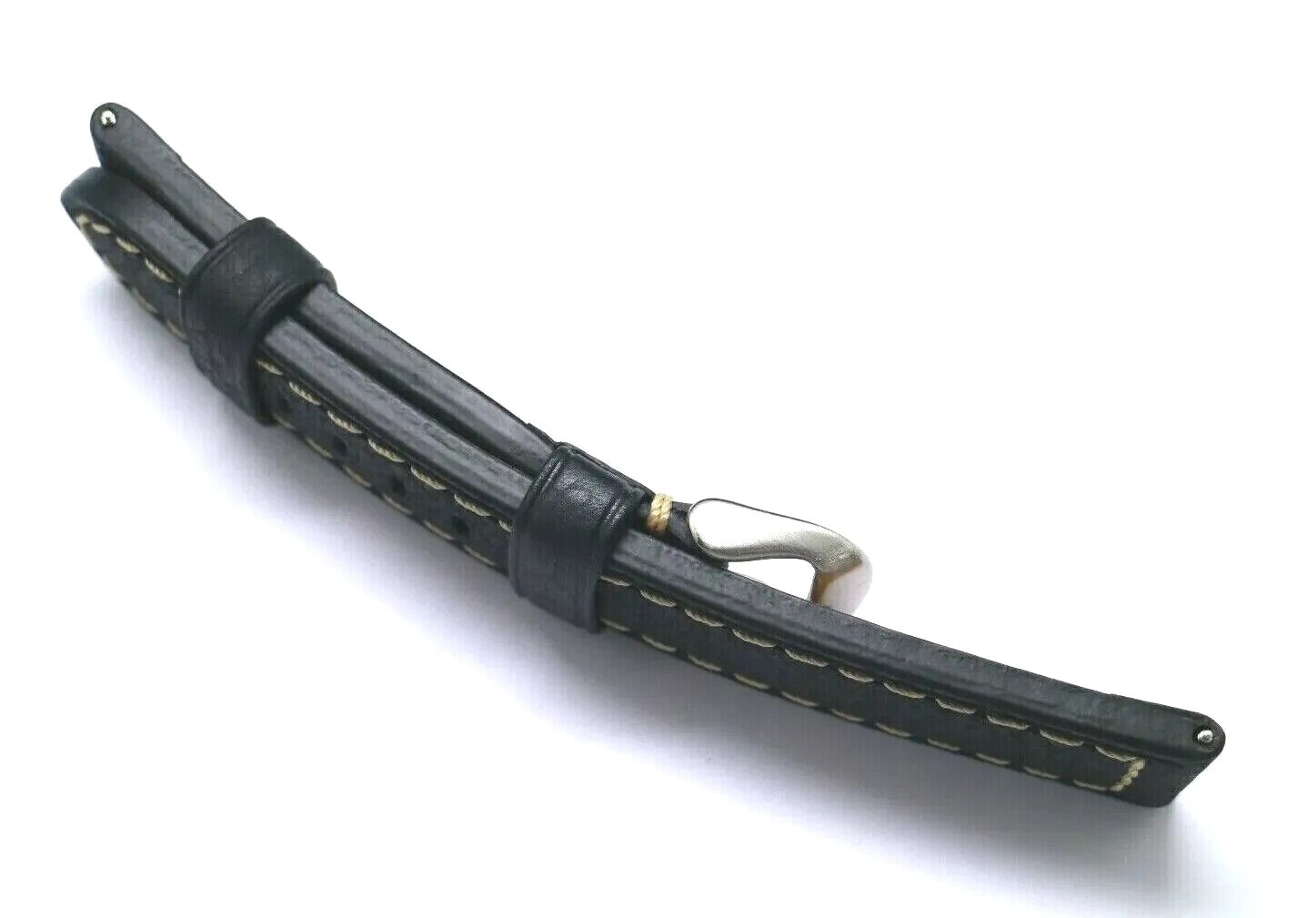 как выглядит 20mm Black Oily Cowhide Leather Contrast Stitch Watch Band W/ Silver Tone Buckle фото