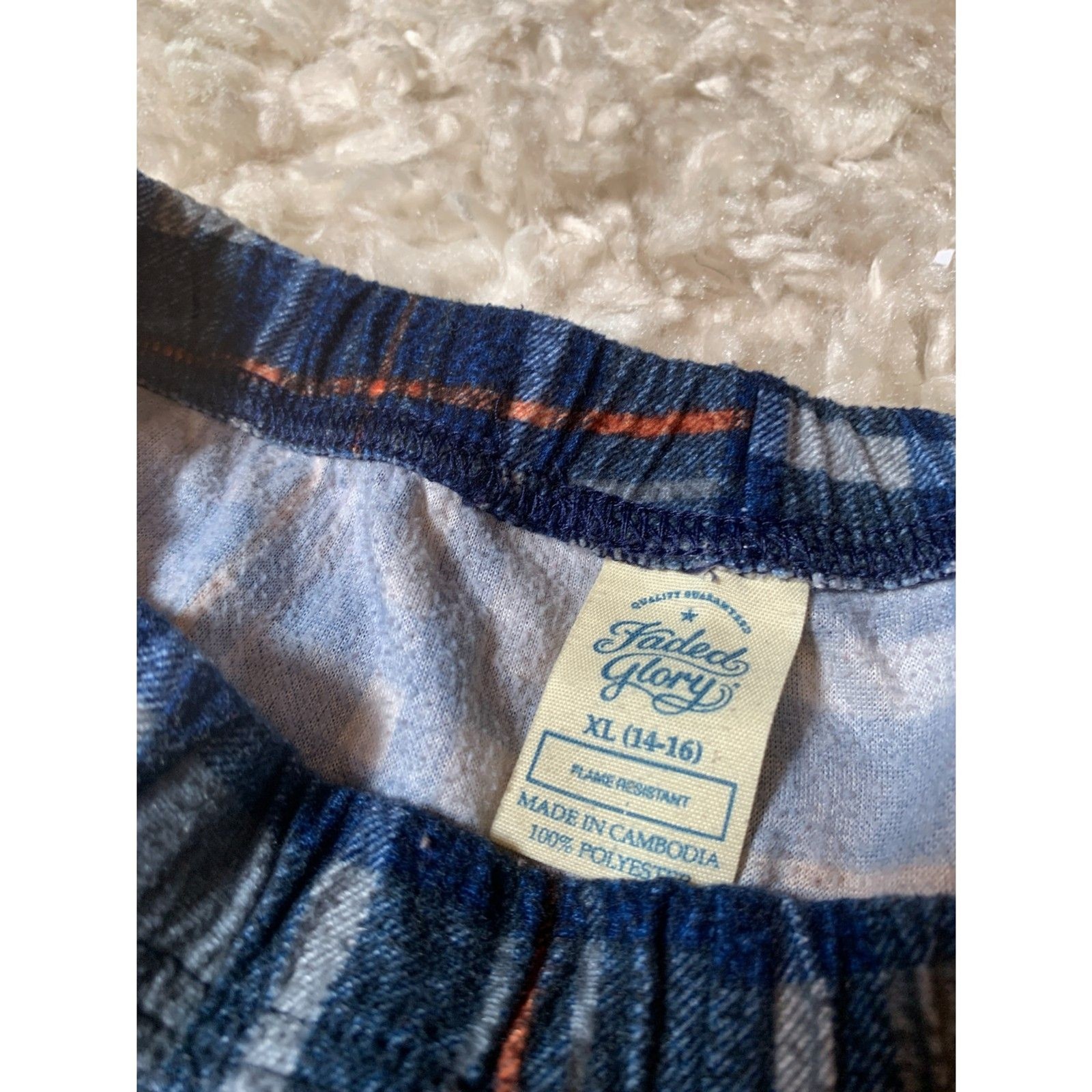 как выглядит Faded Glory Blue Orange and White Plaid Comfortable Loungewear Pajamas фото
