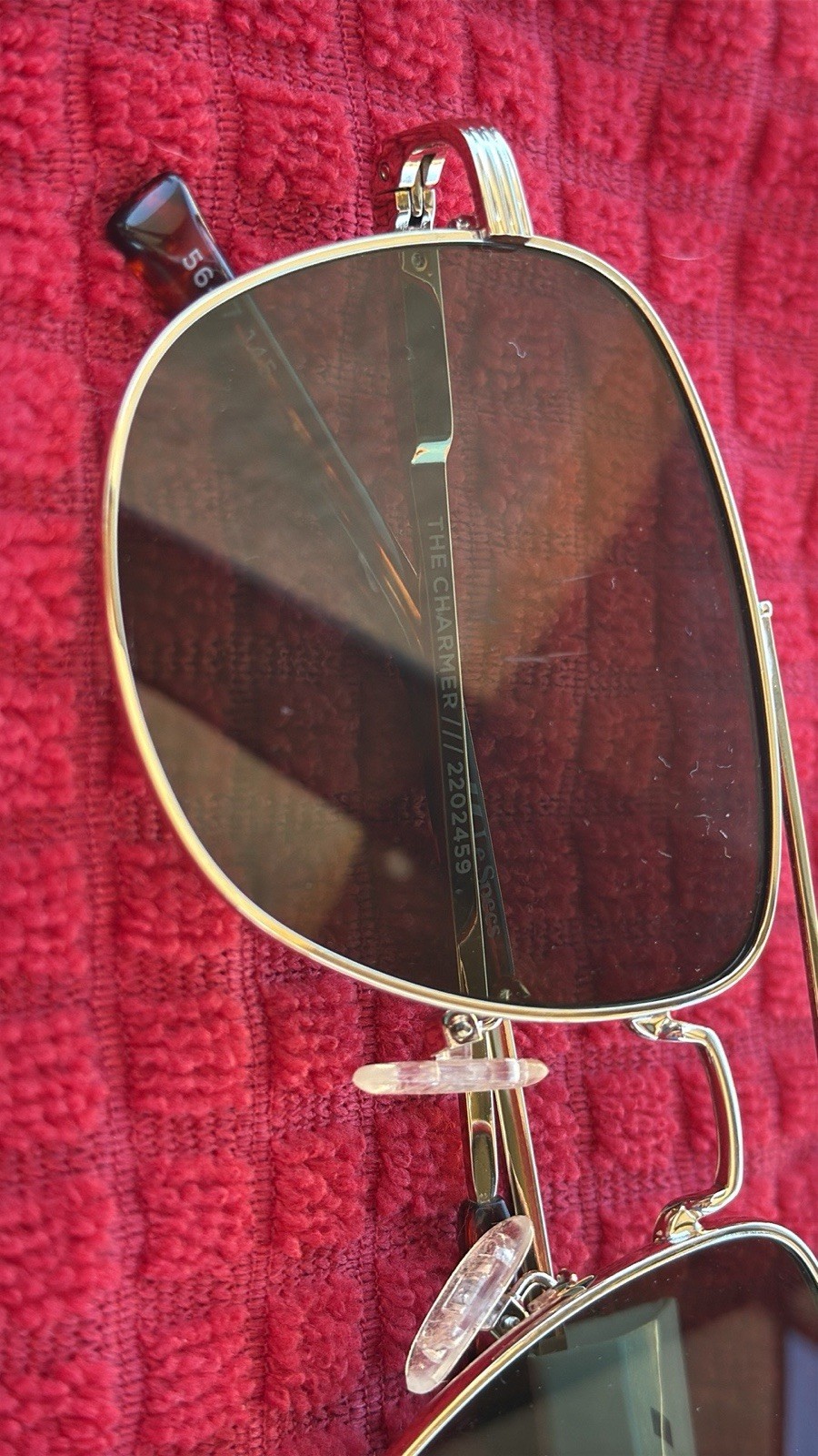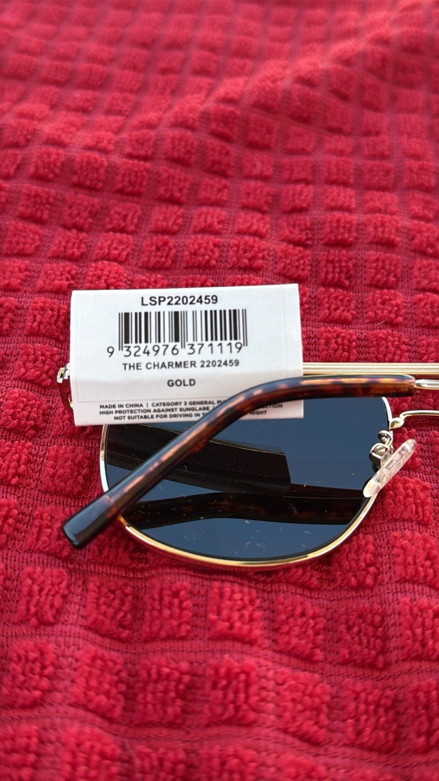 как выглядит Le Specs The Charmer In Gold Khaki Mono Sunglasses.. фото