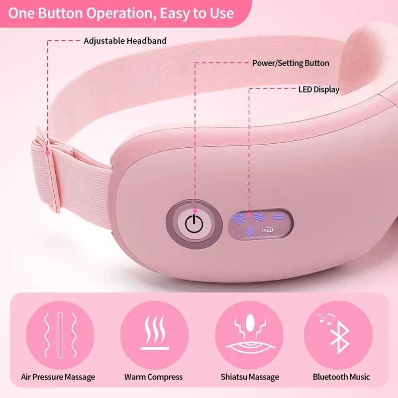 Smart Eye Massager with Heat and Vibration, Pink