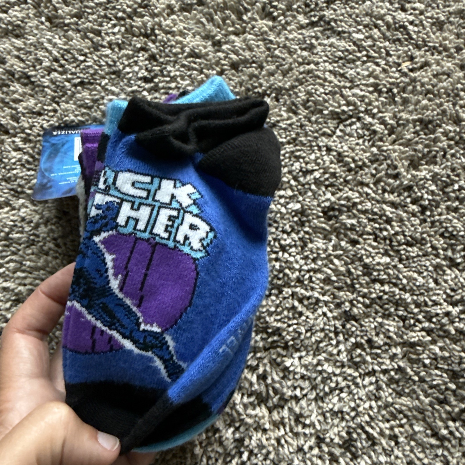 как выглядит Marvel Avengers Black Panther Kids Boys No Show Socks Shoe Size 7.5-3.5 5 Pairs фото