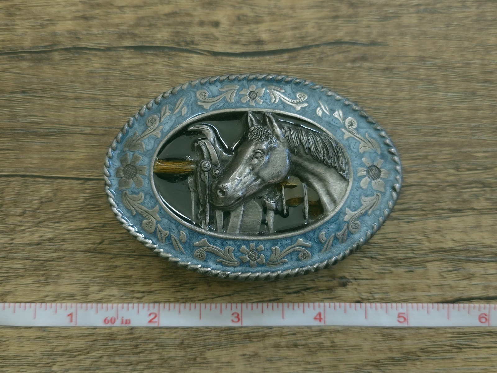 как выглядит Vintage 1985 Siskiyou Belt Co. Horse Belt Buckle Pewter Enamel Horse Lover Gift фото