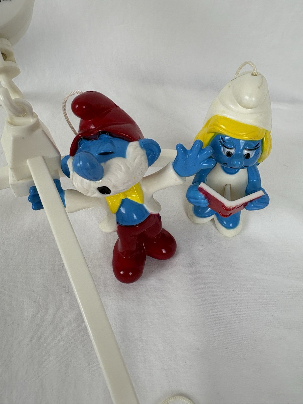 VINTAGE 1984 Smurf Musical Crib Mobile Baby Lullaby Nursery