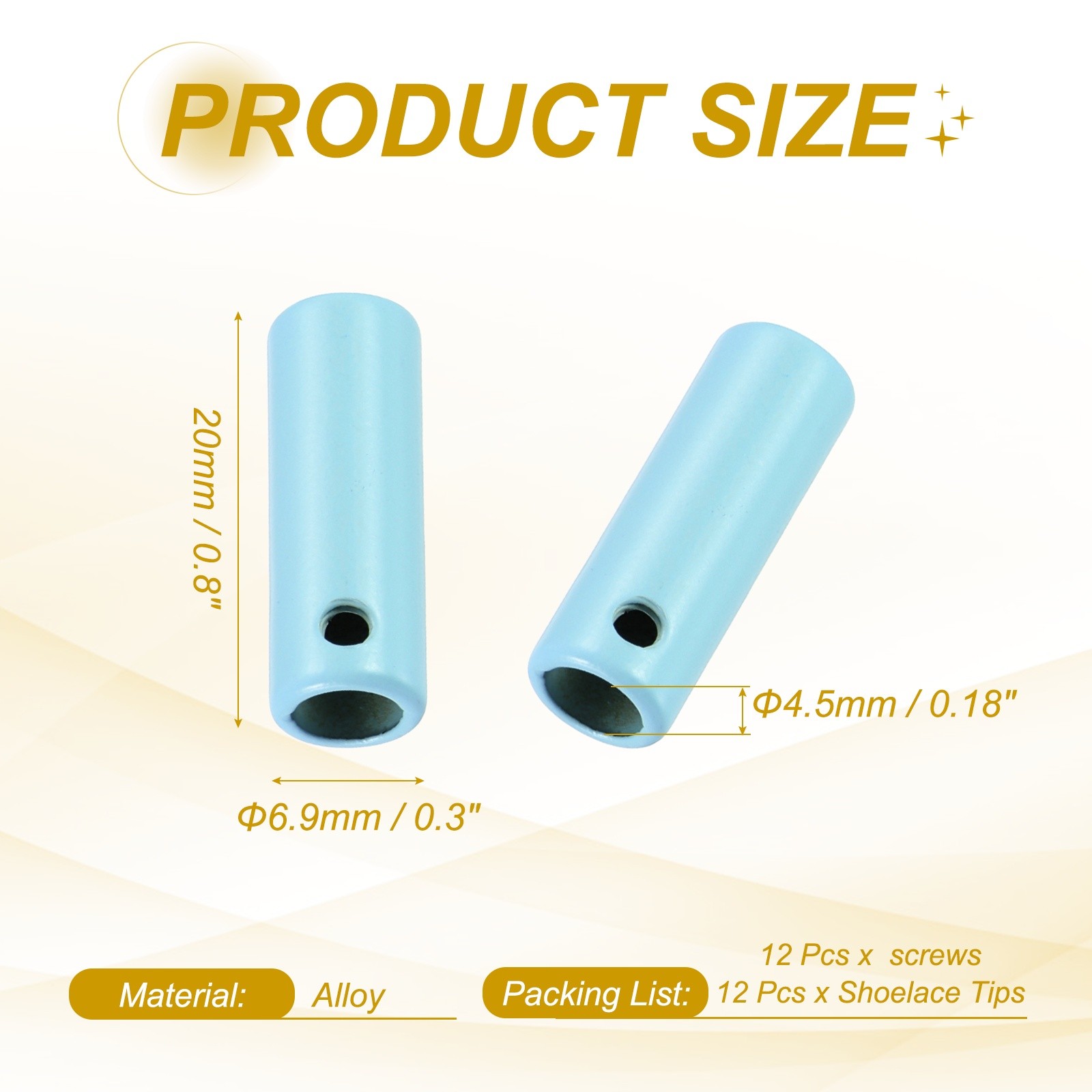 12Pcs 20mm Shoelace Tips Caps with Screw, Light Blue