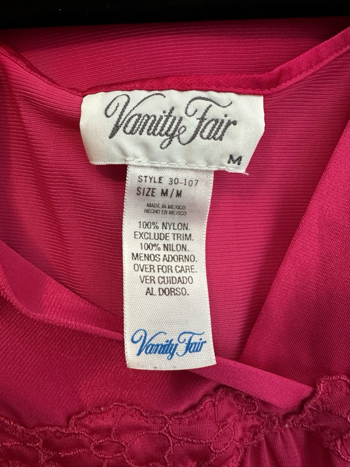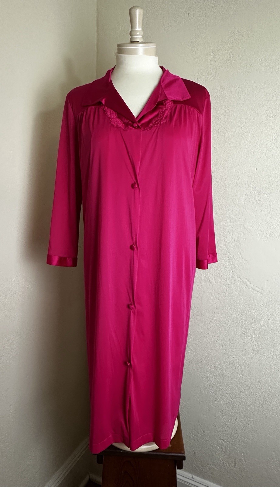 VTG Vanity Fair Robe Nightgown Two Piece Set Size M Rose Glow Hot Pink All Nylon