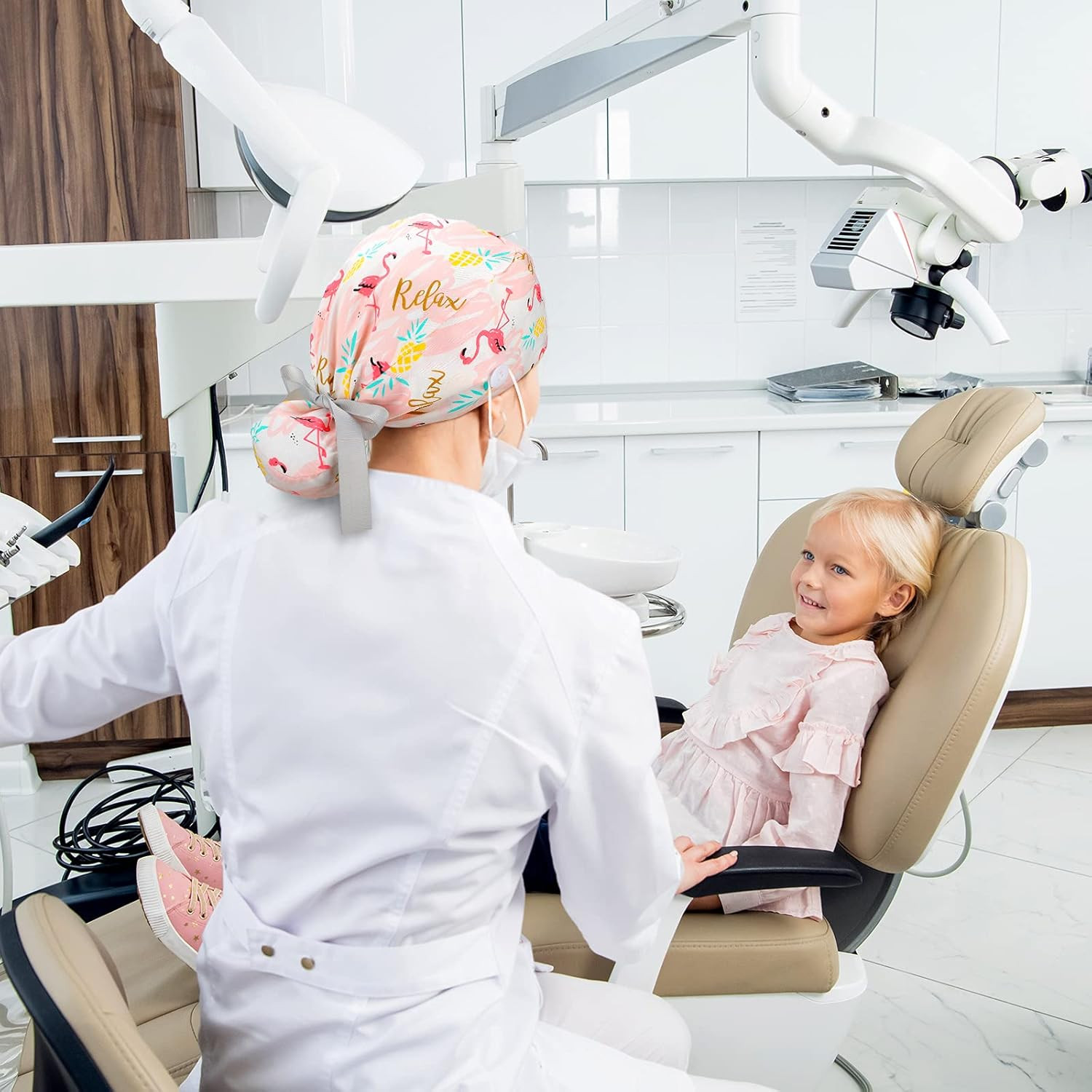 как выглядит 8 Pieces Scrub Caps with Buttons Bouffant Hats with Sweatband Adjustable Ponytai фото