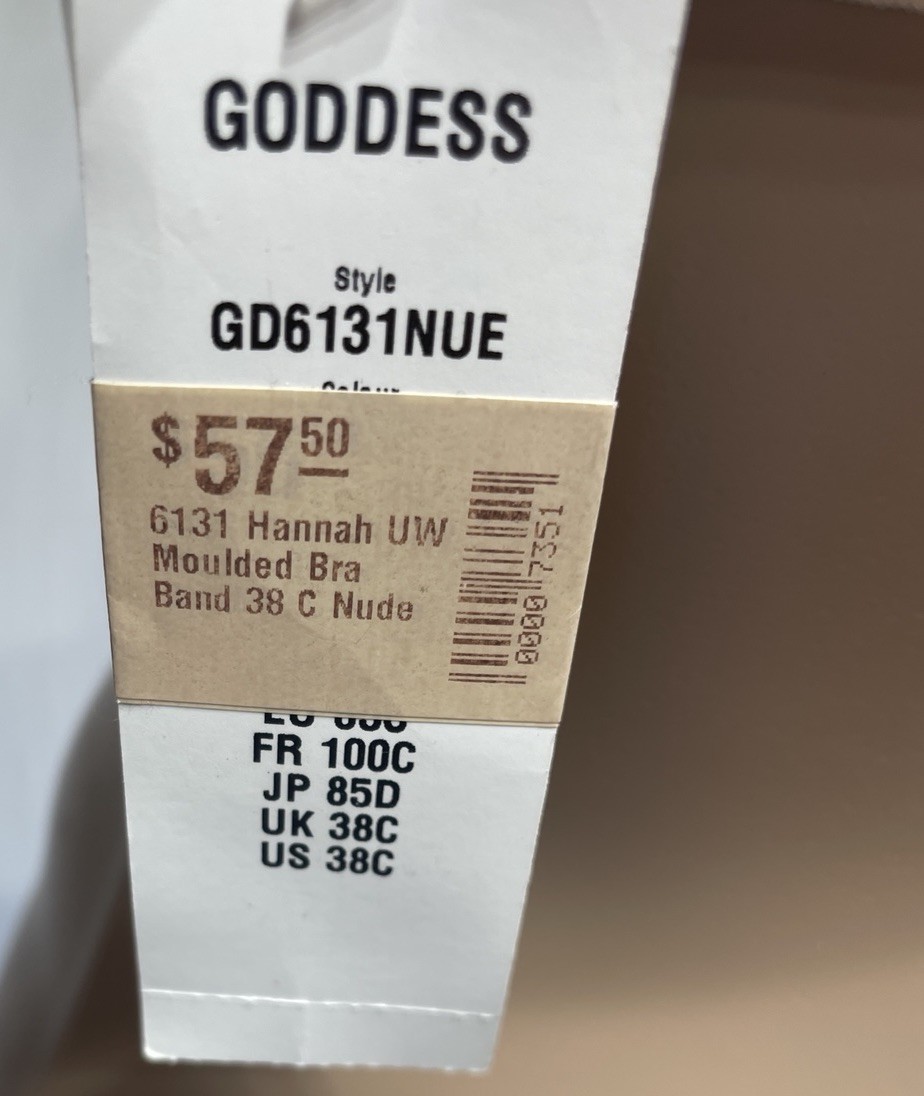Goddess Hannah GD6131 Nude Underwire Molded Side Support Bra 38C