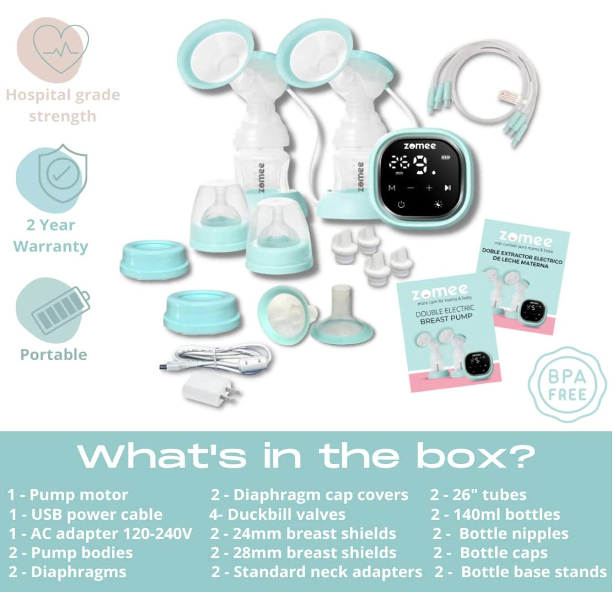 Zomee Z2 Double Electric Breast Pump Breastfeeding Baby Nursing Portable NIB