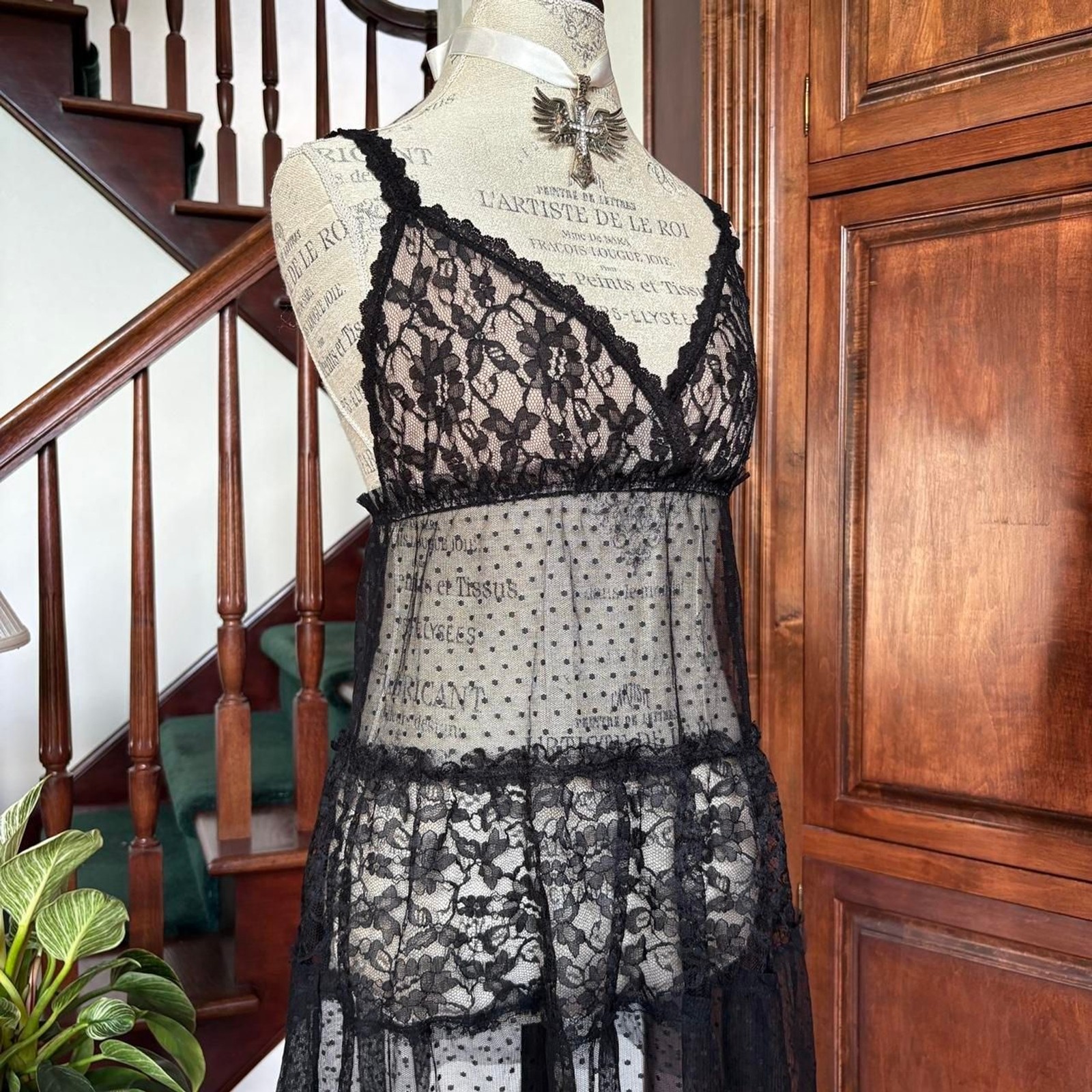 как выглядит Vintage Hanky Panky Black Nude Lace Babydoll Lingerie Dress фото