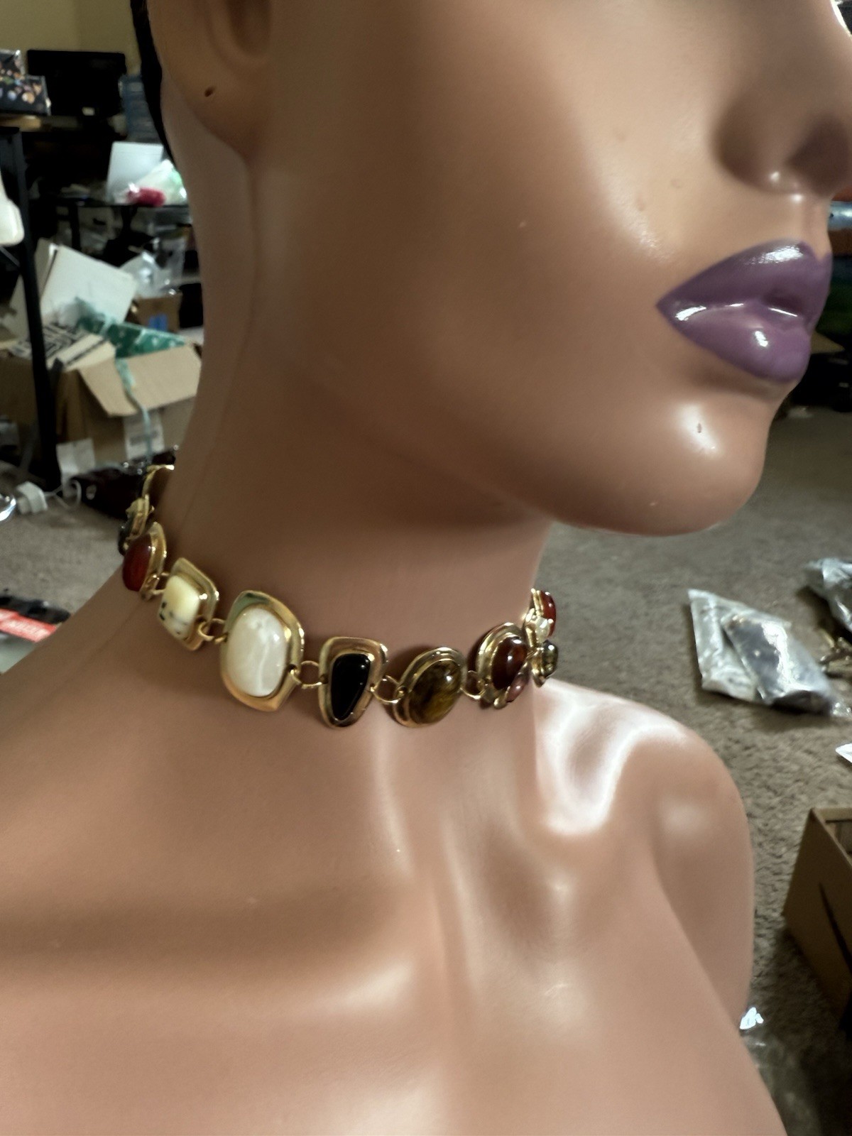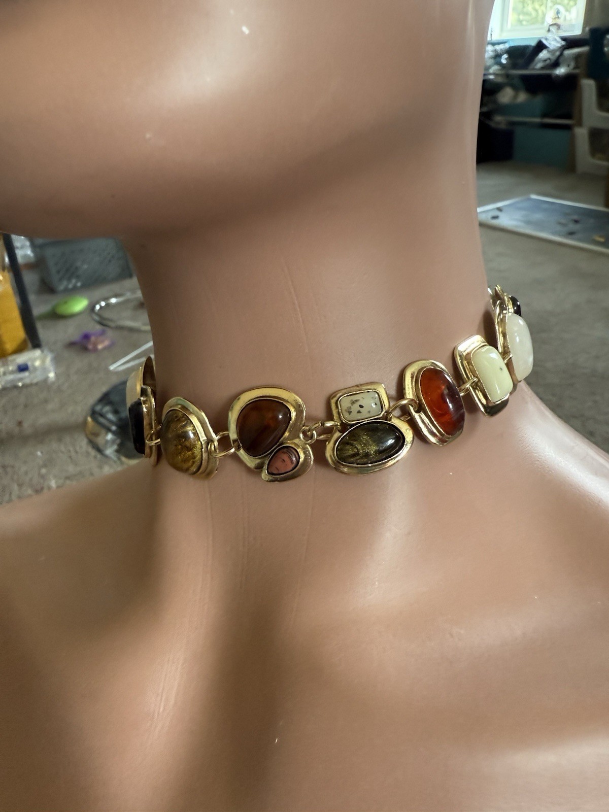 Gold Choker Necklace Chunky Statement White Brown Black