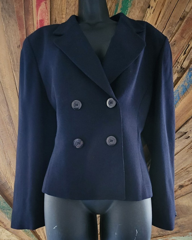 Dior strong shoulder fitted wool midnight blue jacket/blazer Sz 14