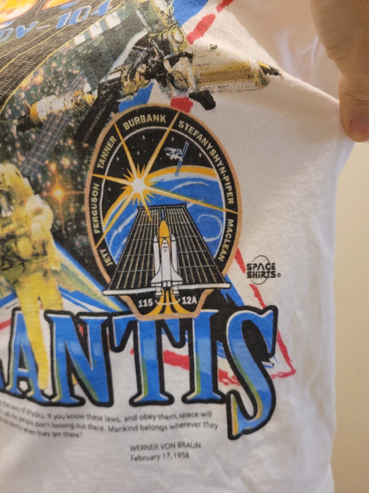как выглядит YOUTH NASA SPACE SHUTTLE ATLANTIS ASTRONAUT T-SHIRT STS-115 SMALL 6-8 фото
