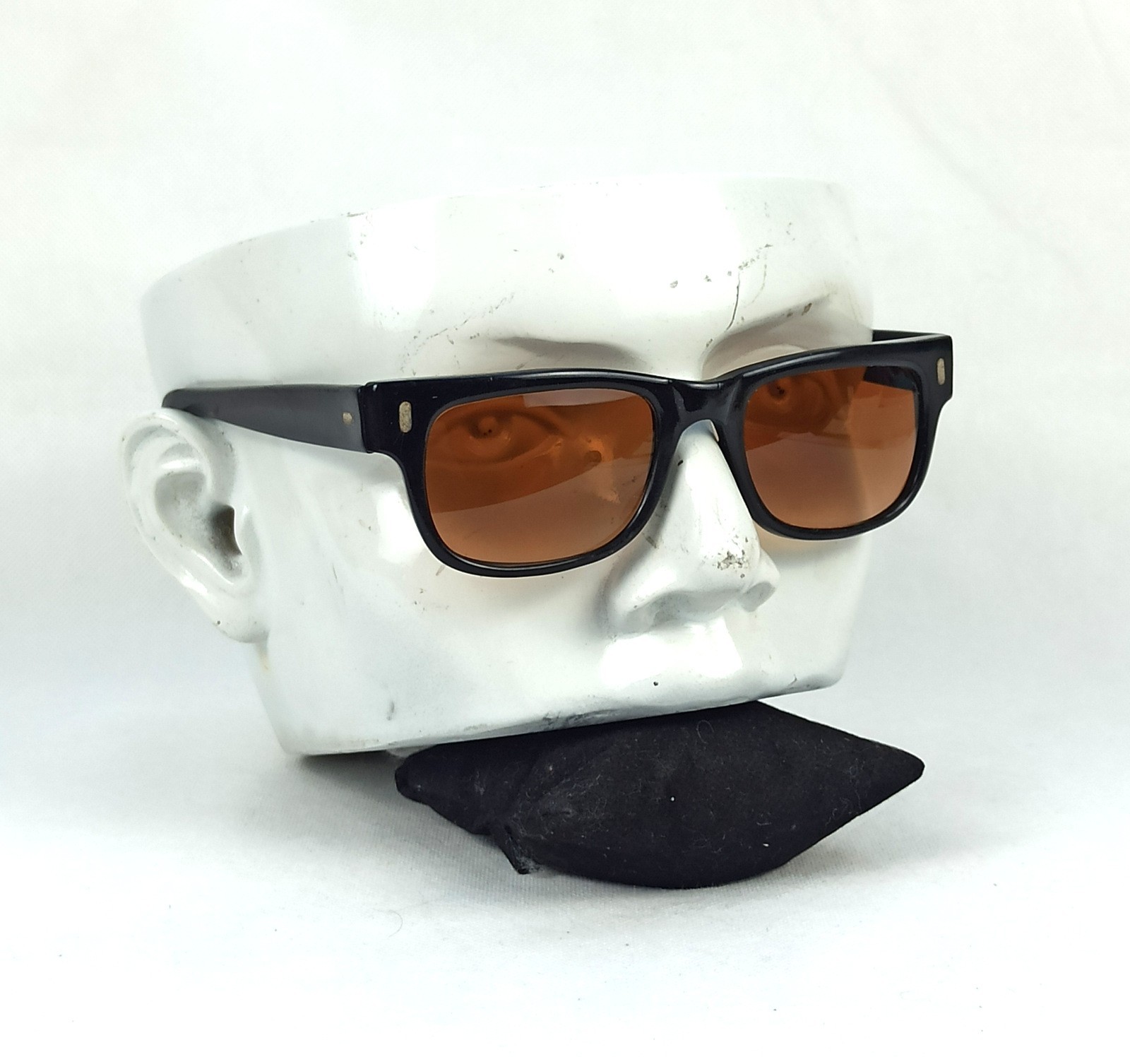 как выглядит RARE BLACK SQUARE SUNGLASSES VINTAGE HONG KONG DESIGN UNISEX 50s MINT фото
