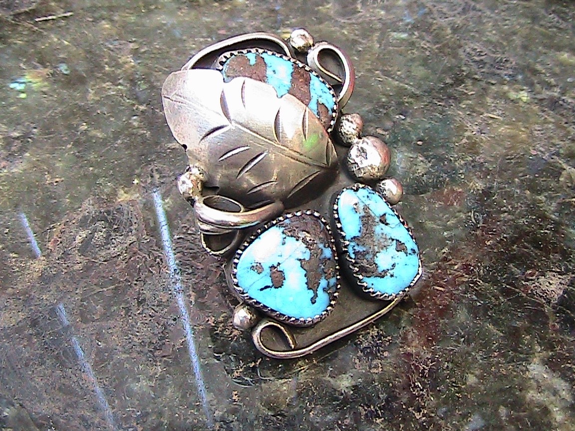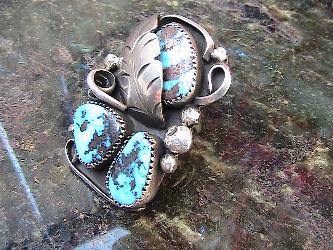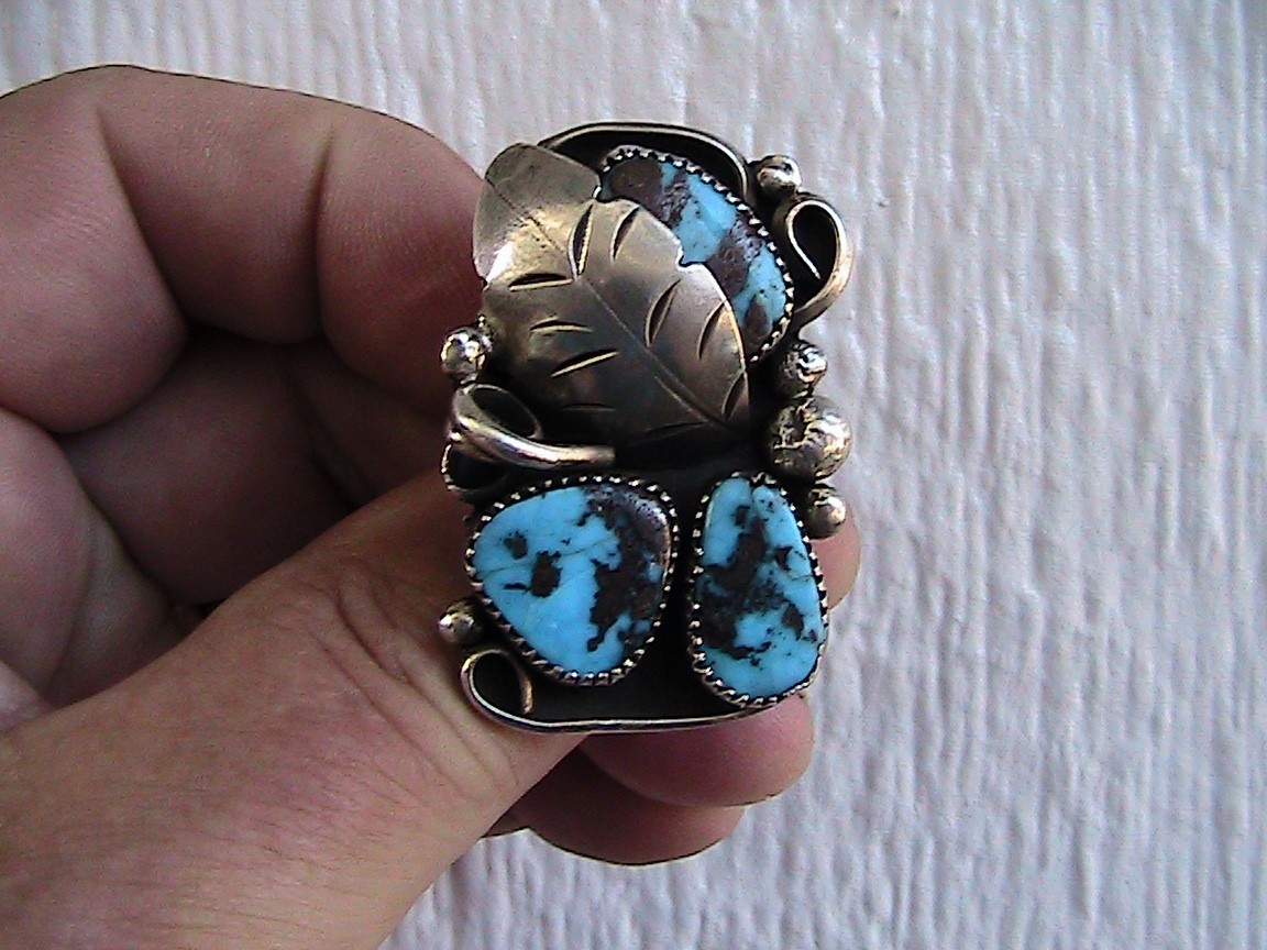 как выглядит Large Navajo Sterling Turquoise Ring - Size 7 - фото