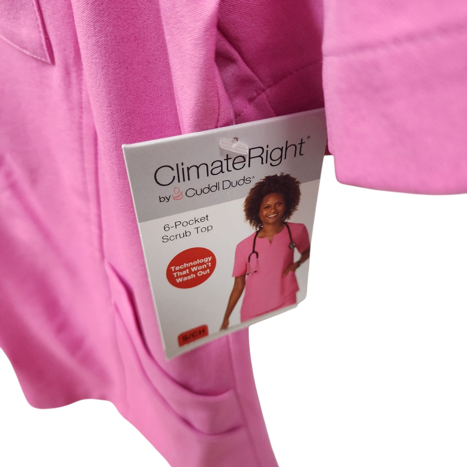 Climate Right NEW Women's V Neck scrub Top Cuddle Duds size Small Pink