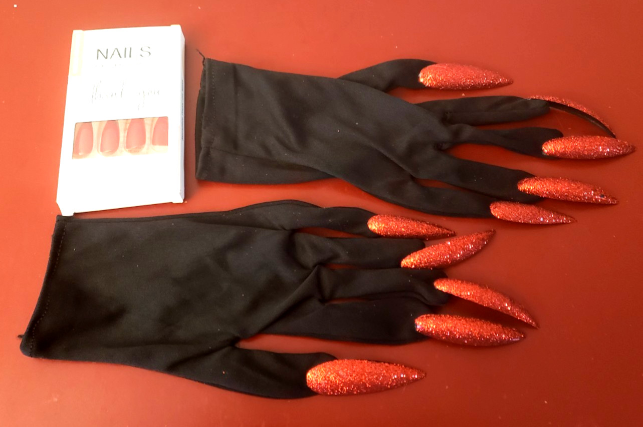 Halloween Witch Gloves with Glitter Nails Plus Press on Nails For Every day Wear