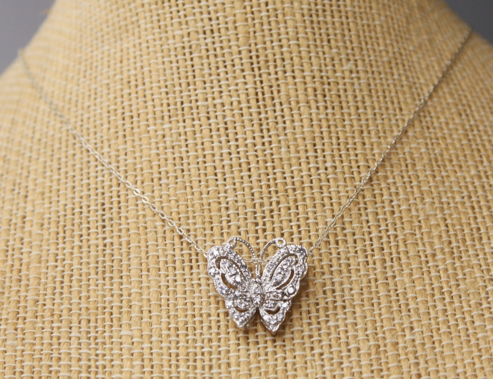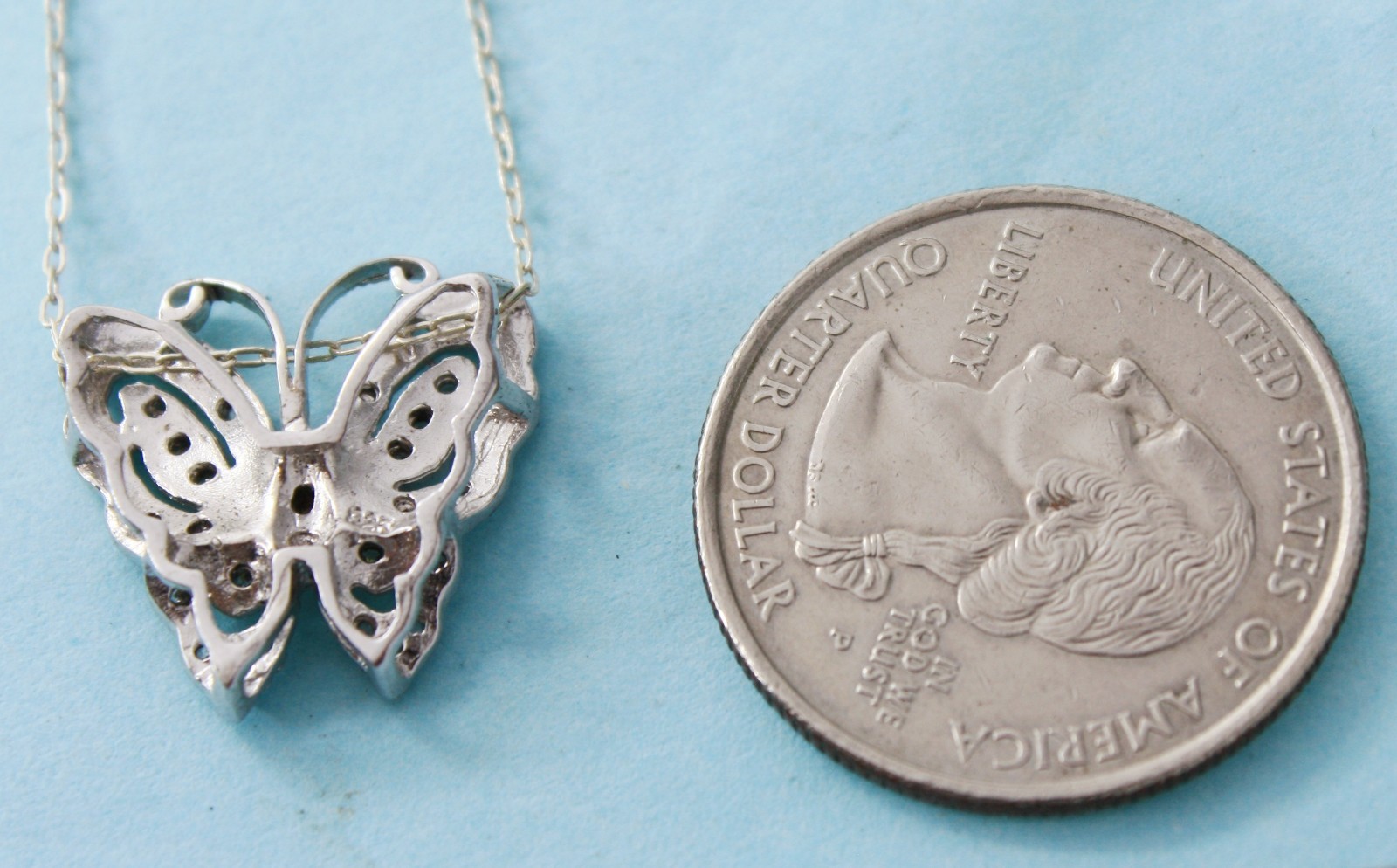 как выглядит Sterling Silver 925 Clear Crystals Butterfly Pendant Chain Necklace 15" фото