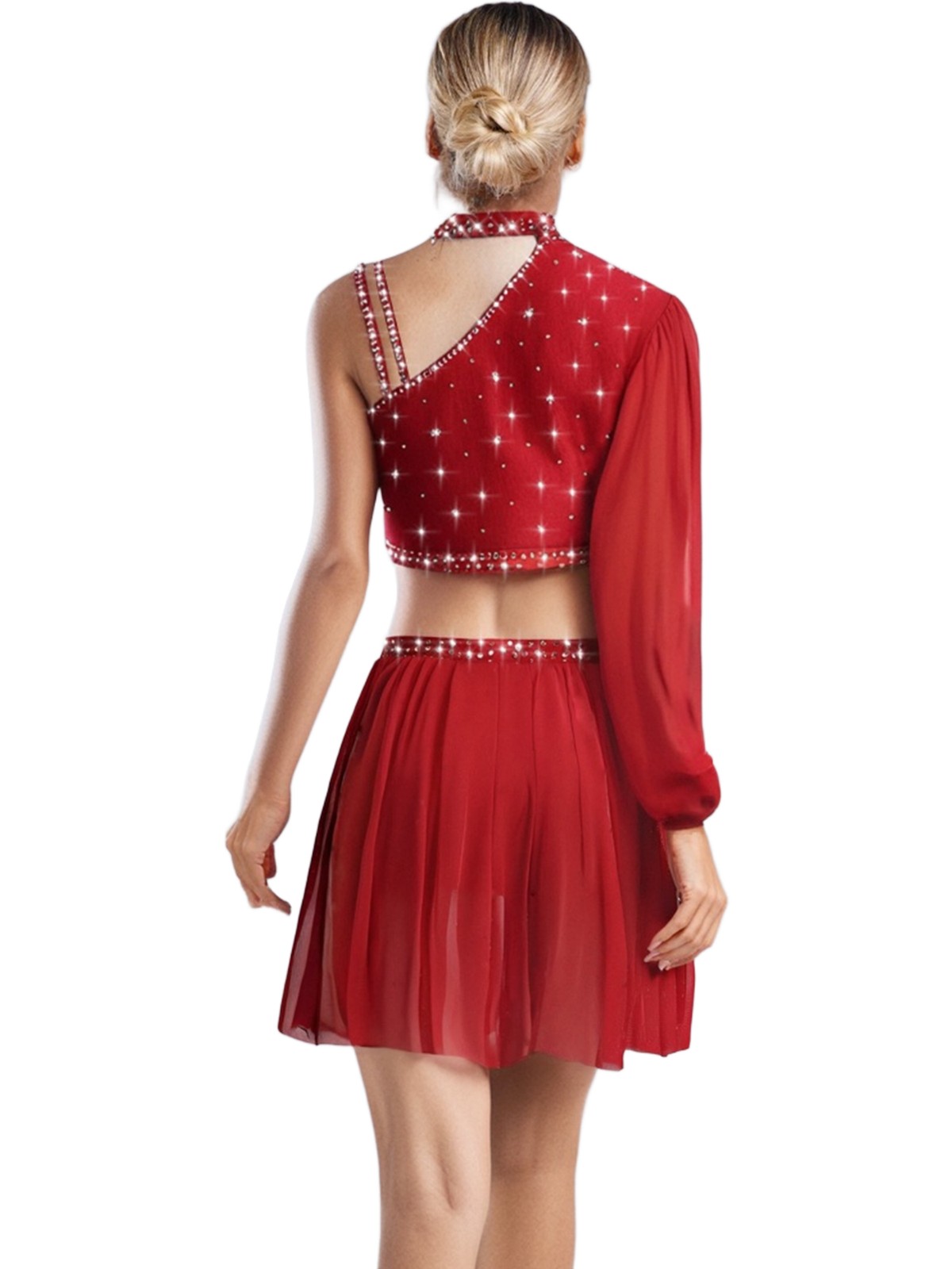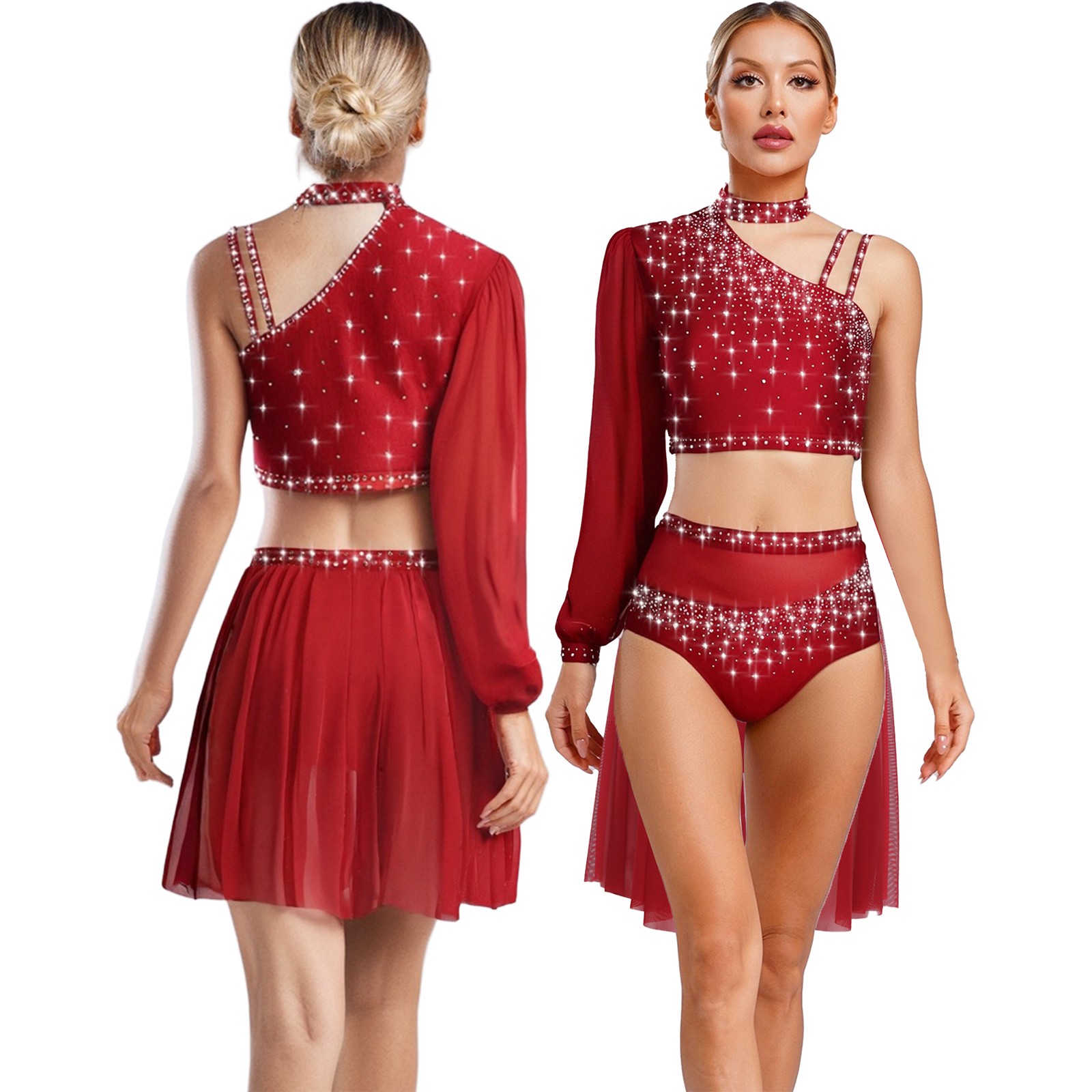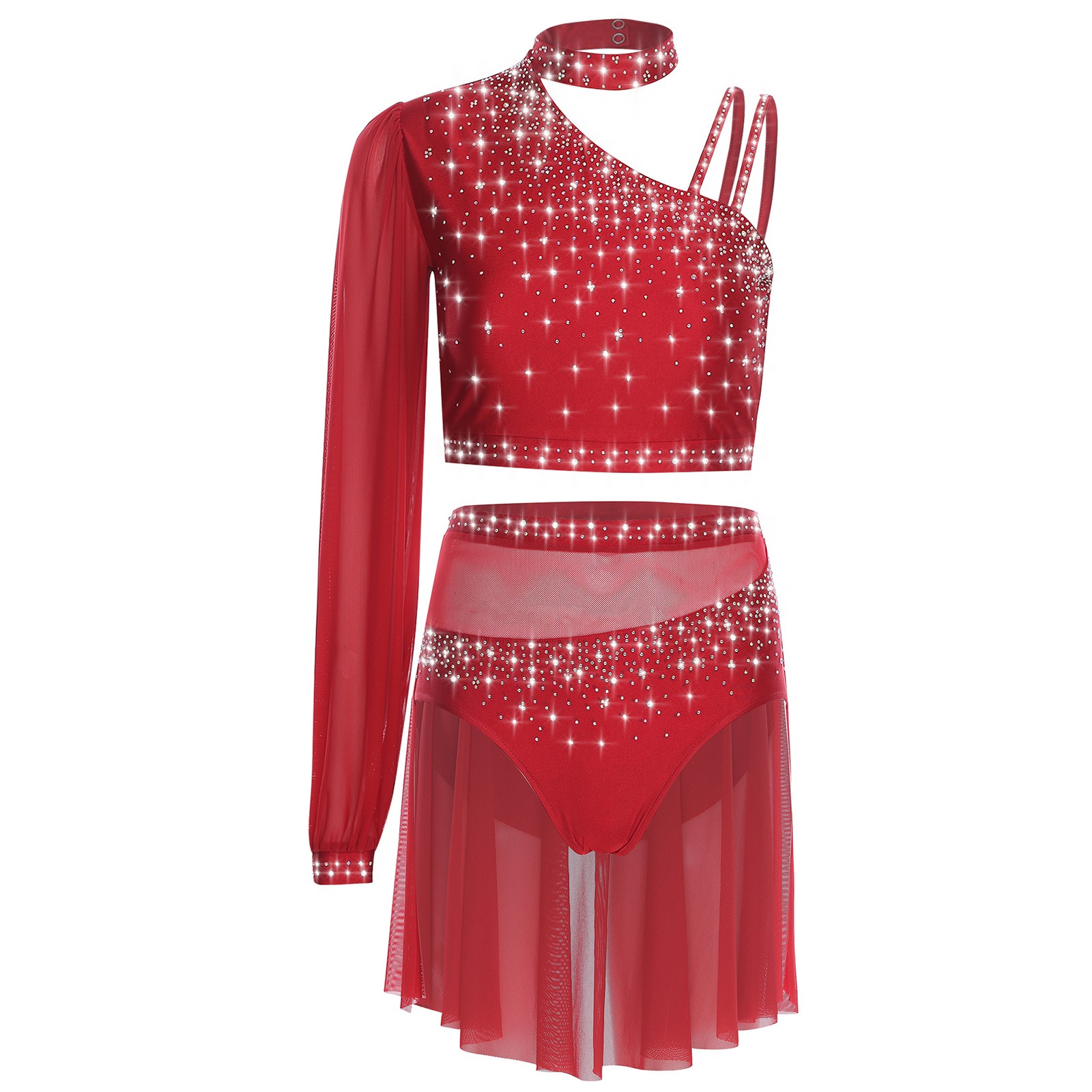 Women Dress Practice Outfit Latin Dancewear Colorful Dance Long Sleeve Lyrical