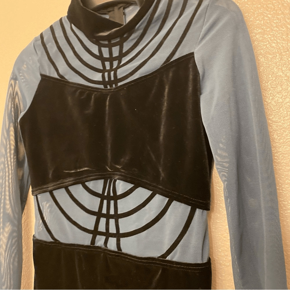 WEISSMAN Elite Dance Costume unitard blue black velvet To Be Loved 14115 LC