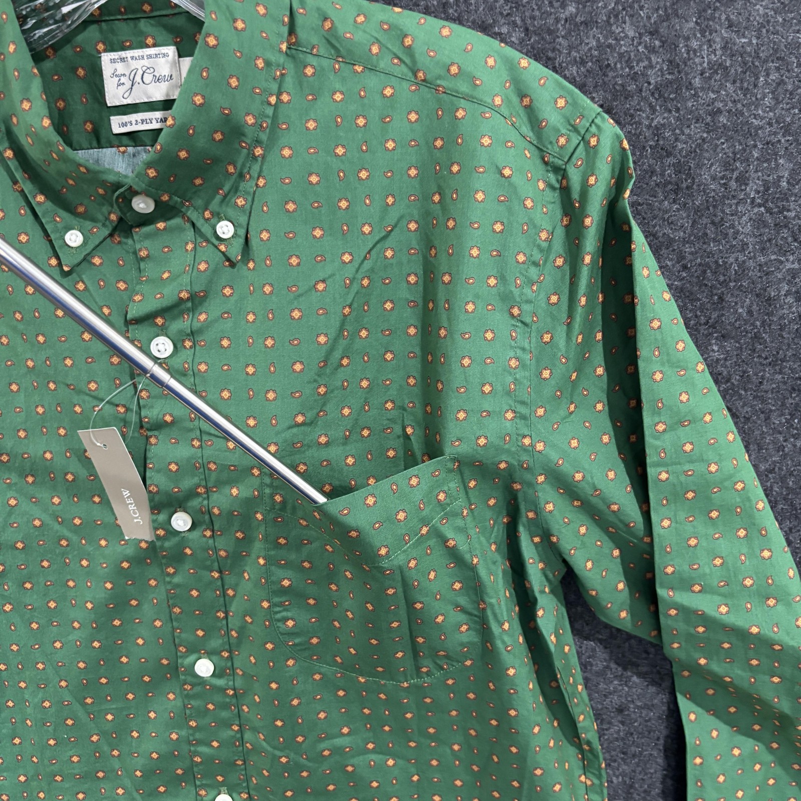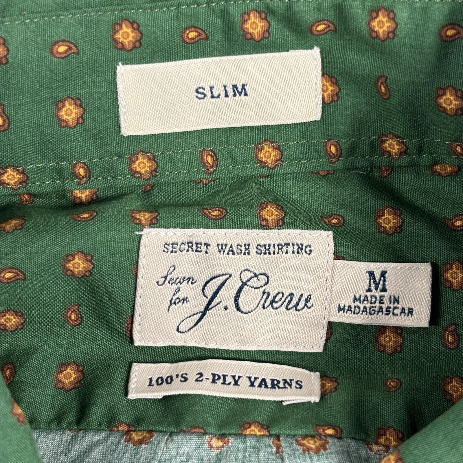 как выглядит J Crew Shirt Mens Medium Green Floral Slim Fit Secret Wash Button Up фото