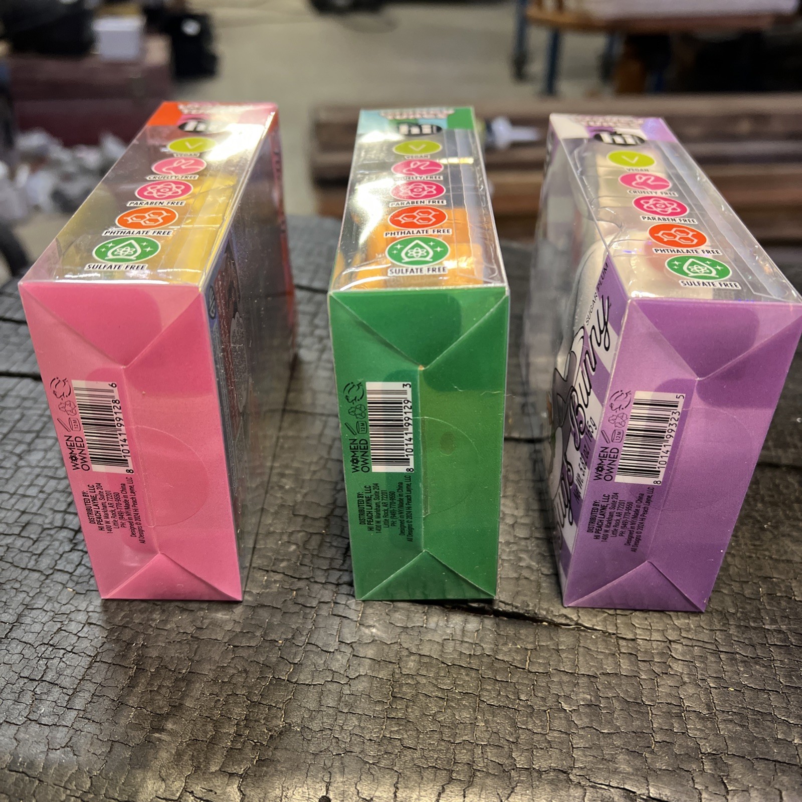 Ingredients: Citric Acid, Sodium Bicarbonate, Sodium Carbonate, Mica, Titanium Dioxide, Synthetic Fluorphlogopite, Charcoal Powder, Tin Oxide, Iron Oxides, Red 40, Red 33, Blue 1, Yellow 5