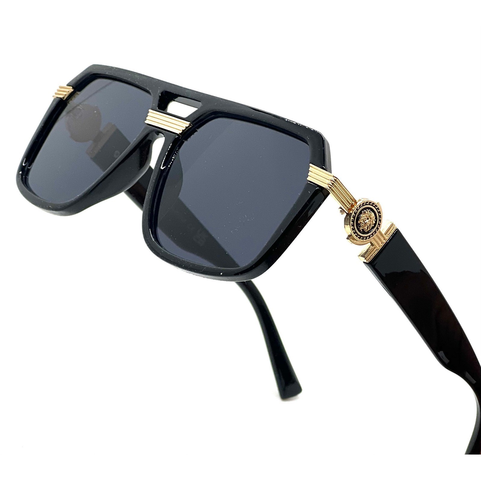 Black Gold Lion Head Sunglasses Square Frame Fashion Statement Shades Kleo Gafas
