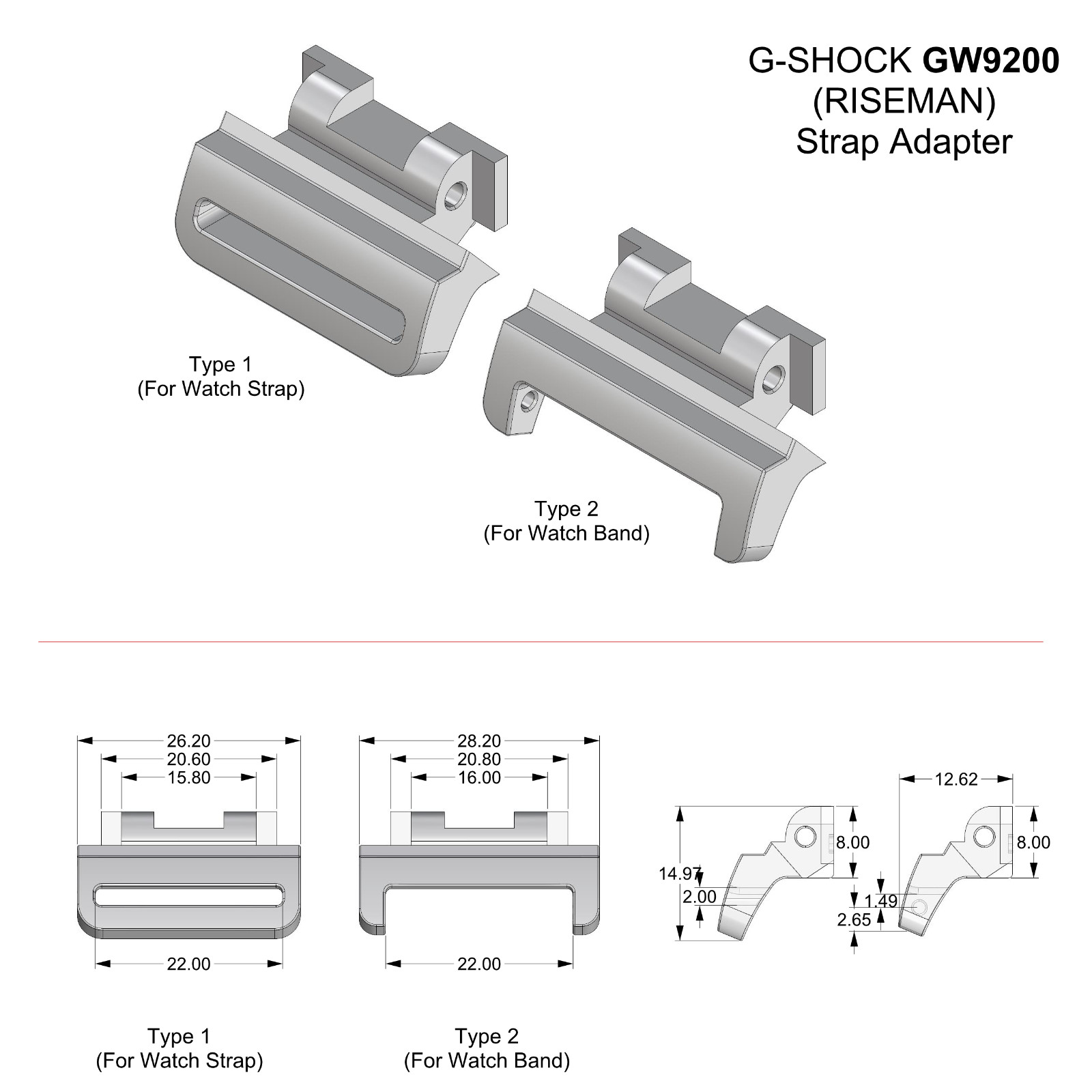 3D Printed Tough Resin Watch Adapter For G-Shock GW9200 series