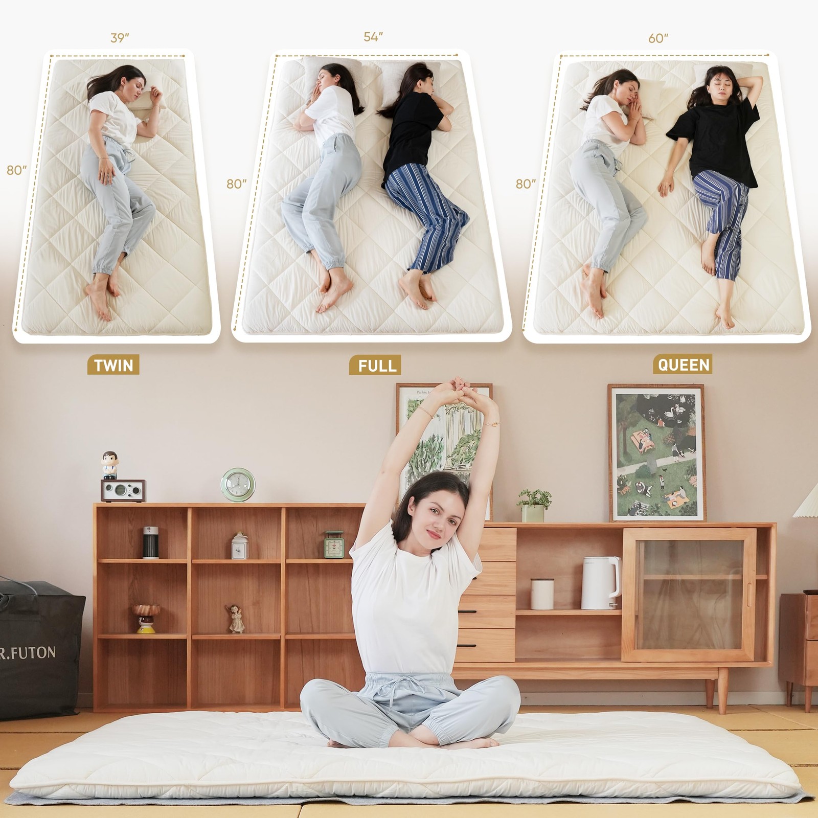 Japanese Floor Futon Mattress Traditional Cotton Shikibuton Foldable Roll Up ...