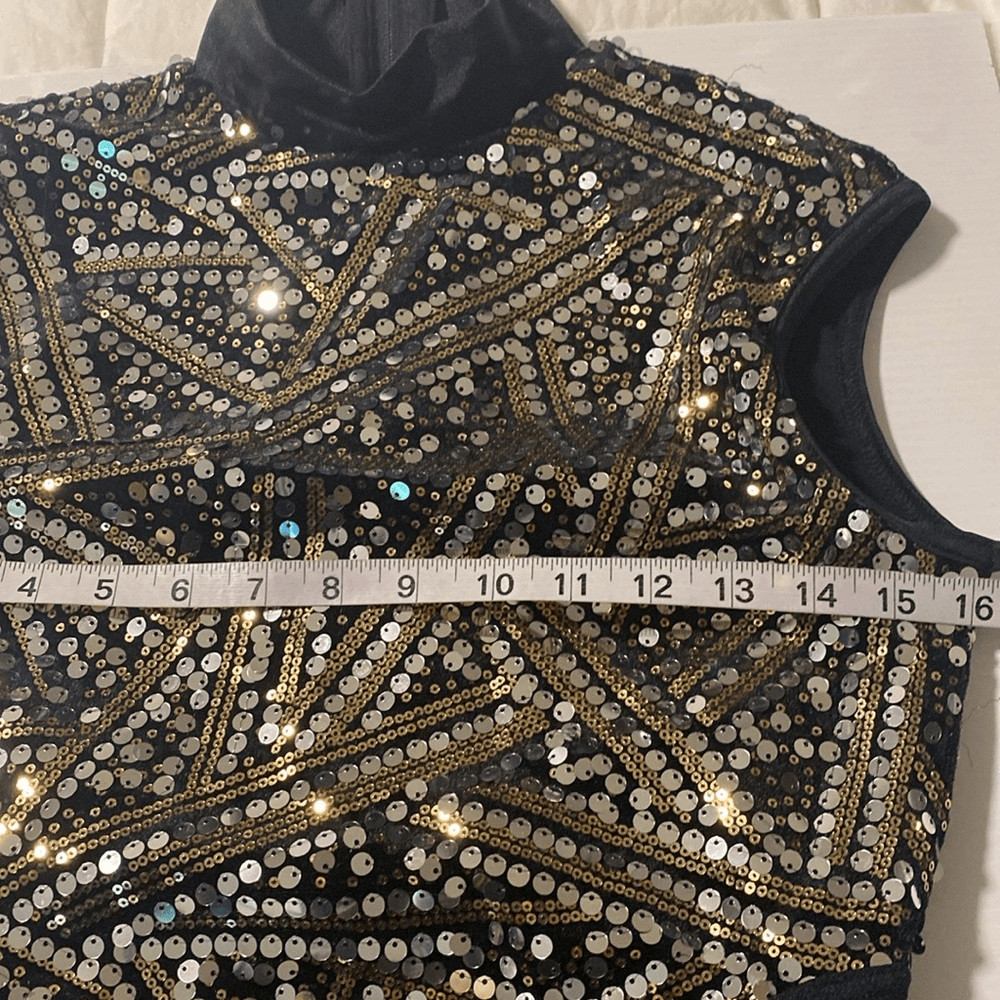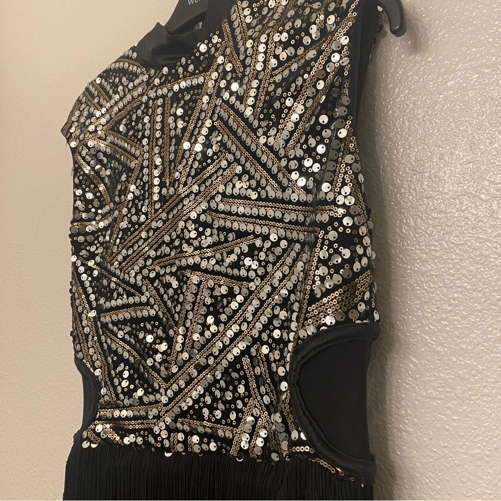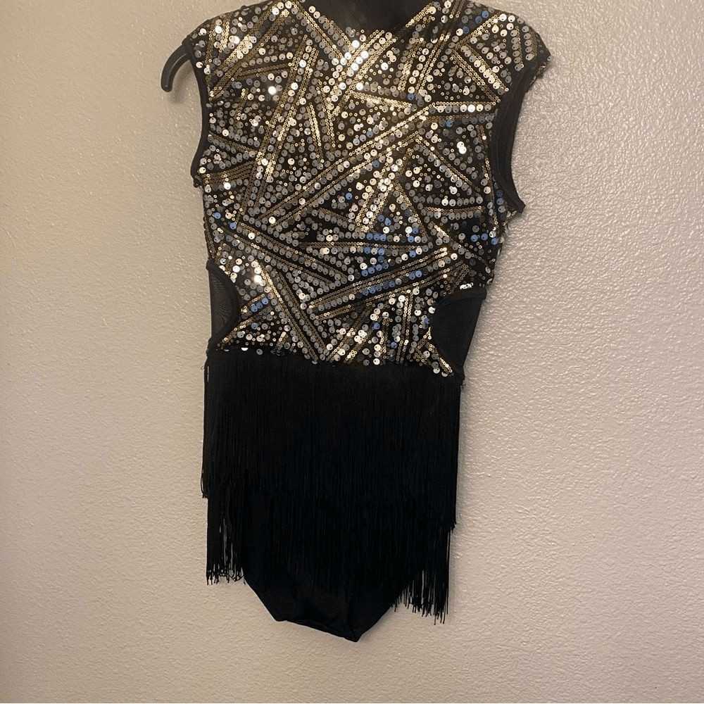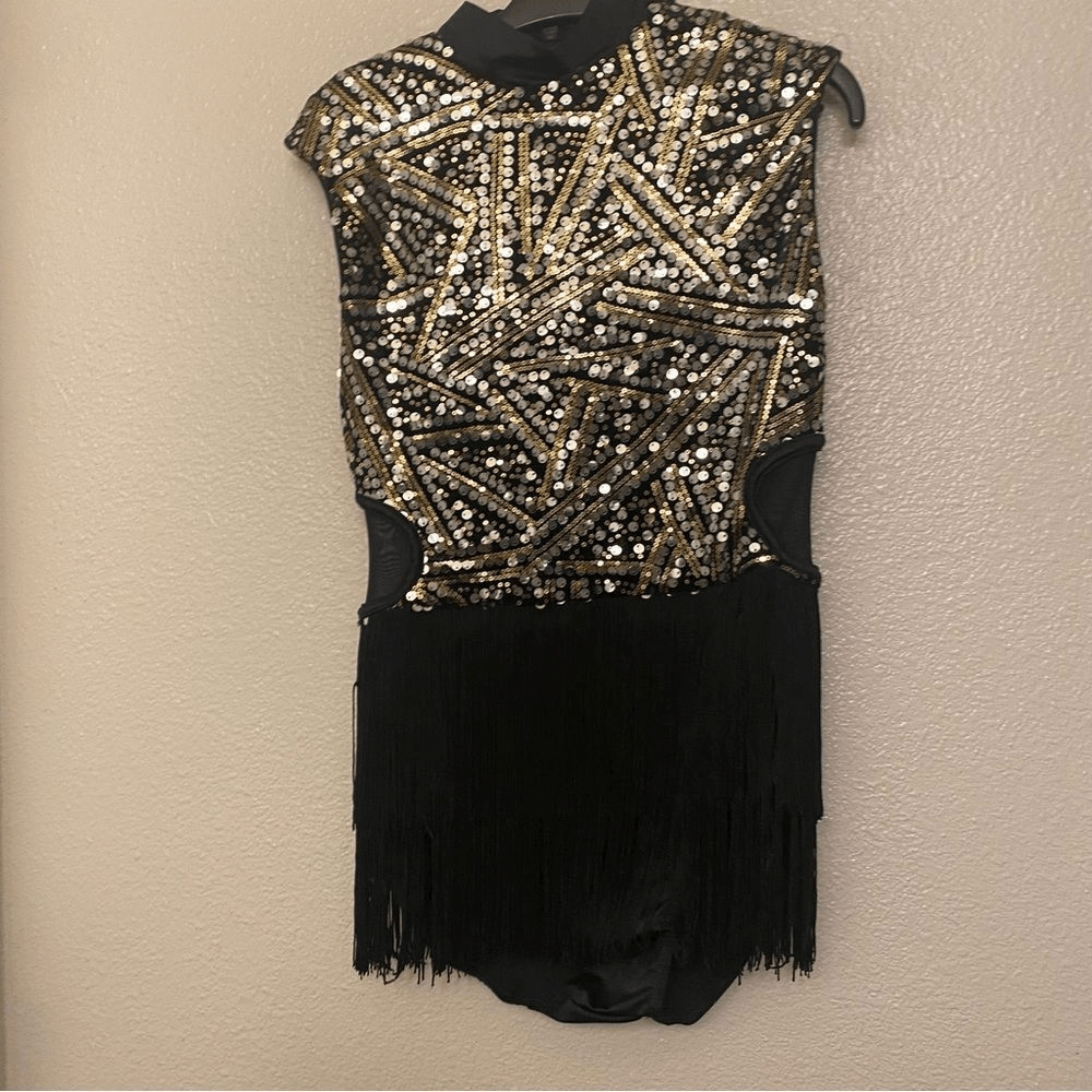 WEISSMAN Dance Costume flapper fringe Plain Fancy 13567 black gold MA adult
