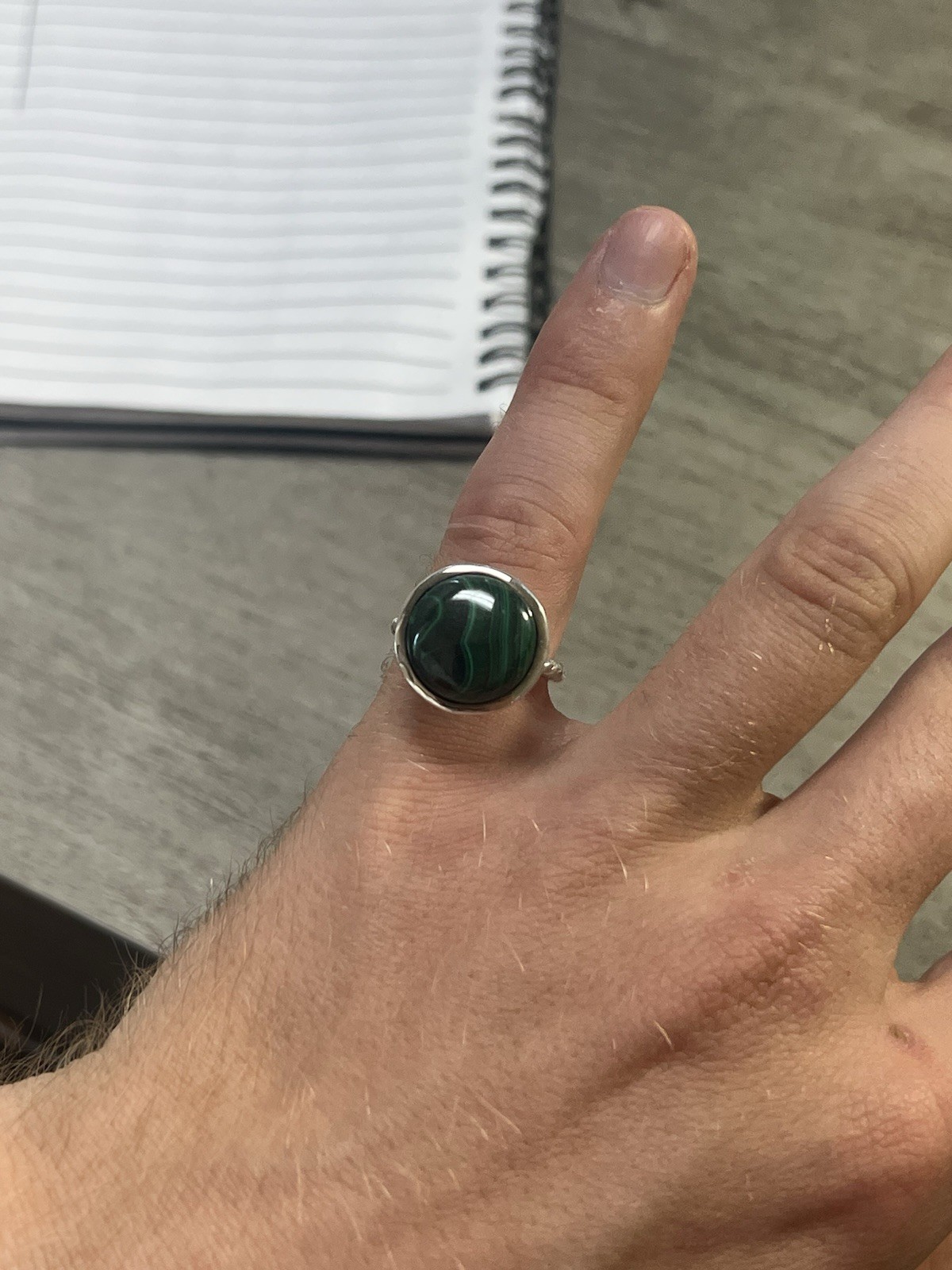 как выглядит India Green Stone Malachite Ring 925 Sterling Silver Sz7.5 9.3G фото