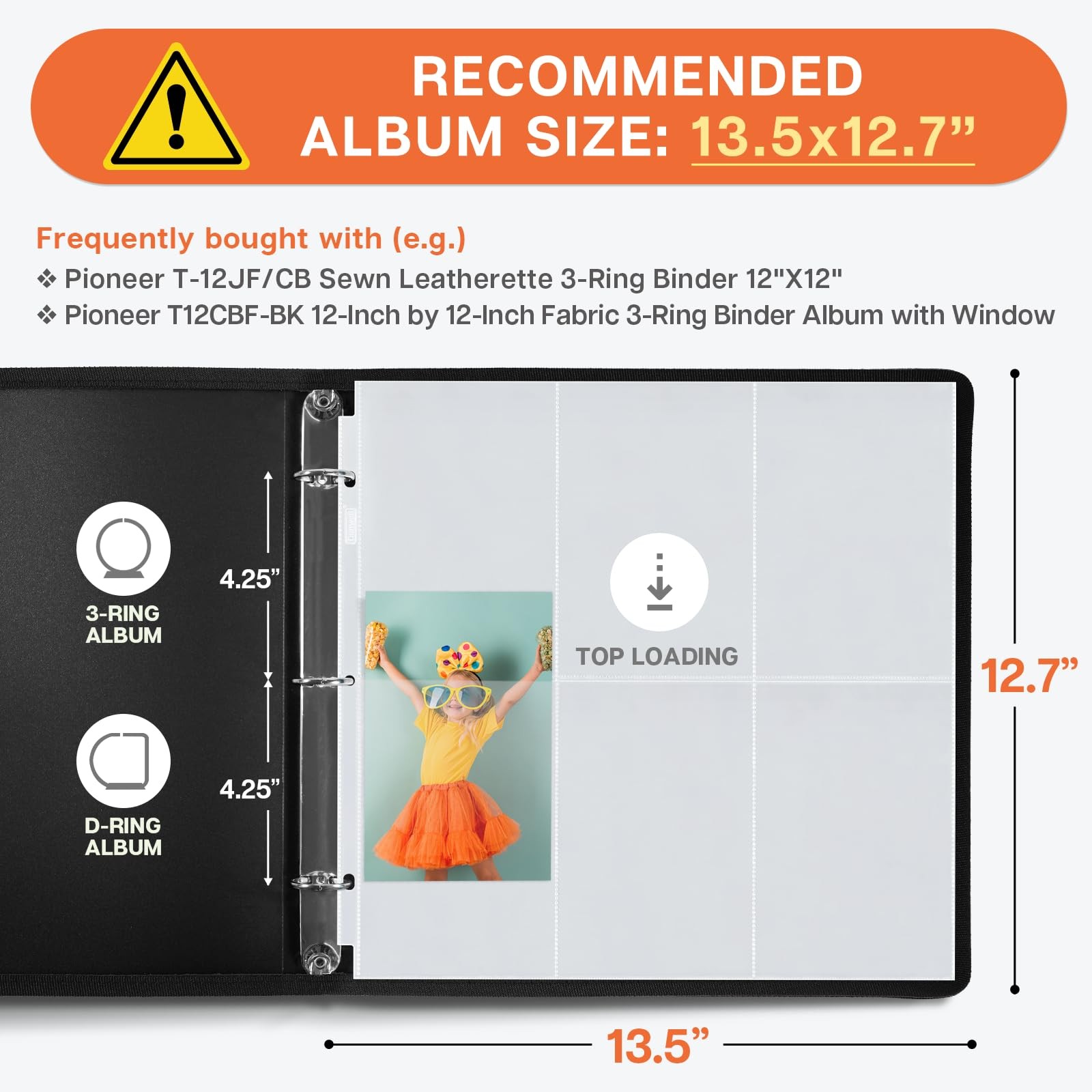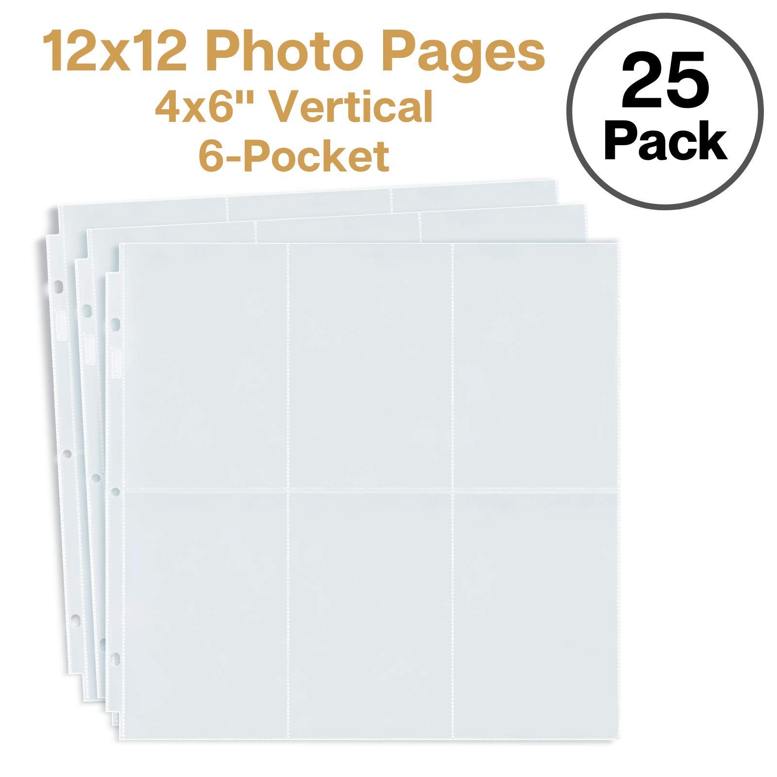 Photo Album Refill Pages 12x12, 4x6 Vertical, 25 Pack, Holds 300 Photos, 3-